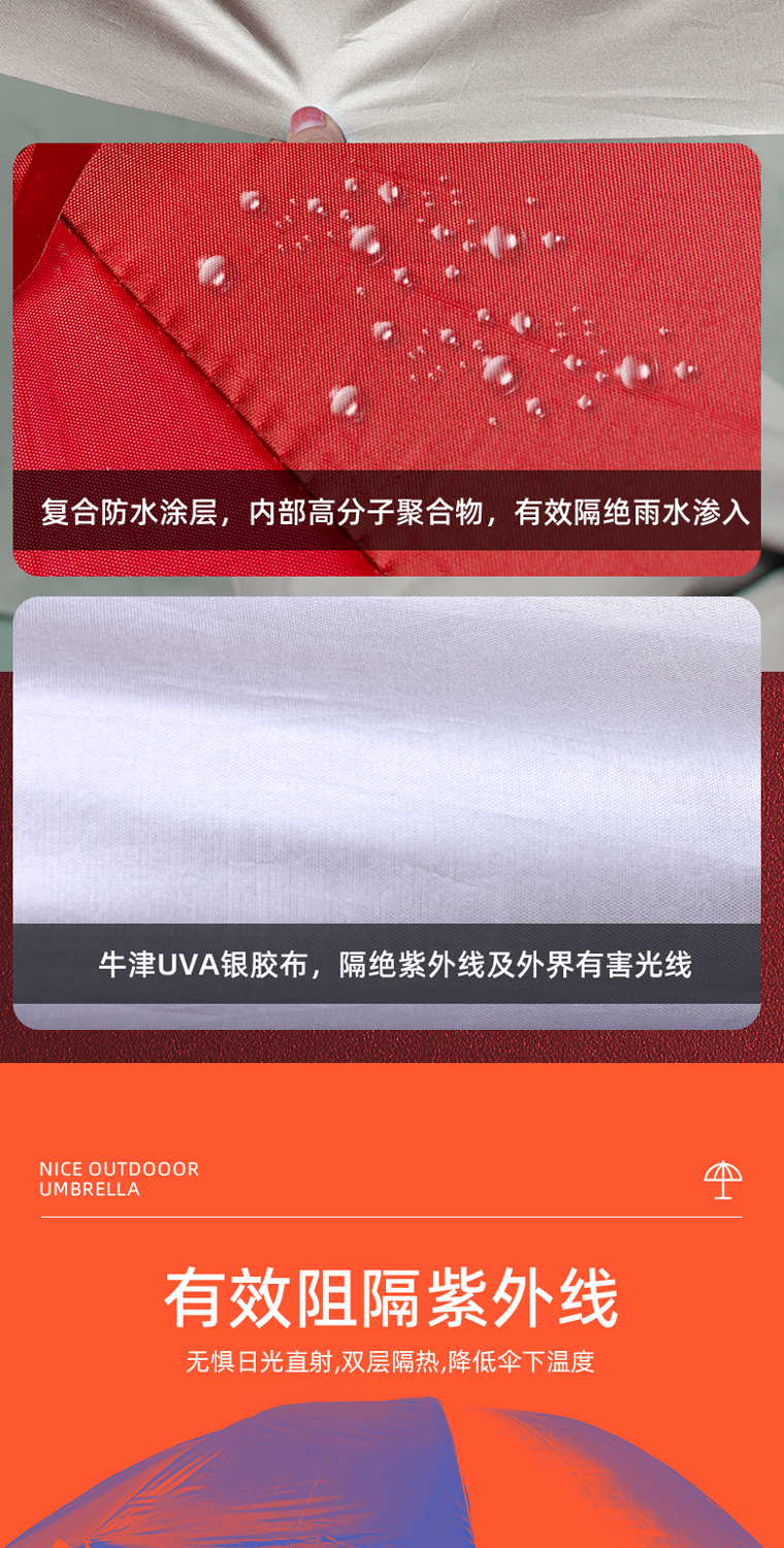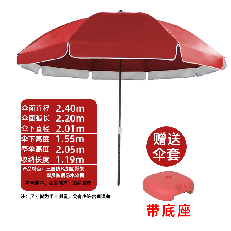 • [두꺼운 이중우산+방풍우산꽂이] 2.4M 소형 레드 - 20L 베이스 포함