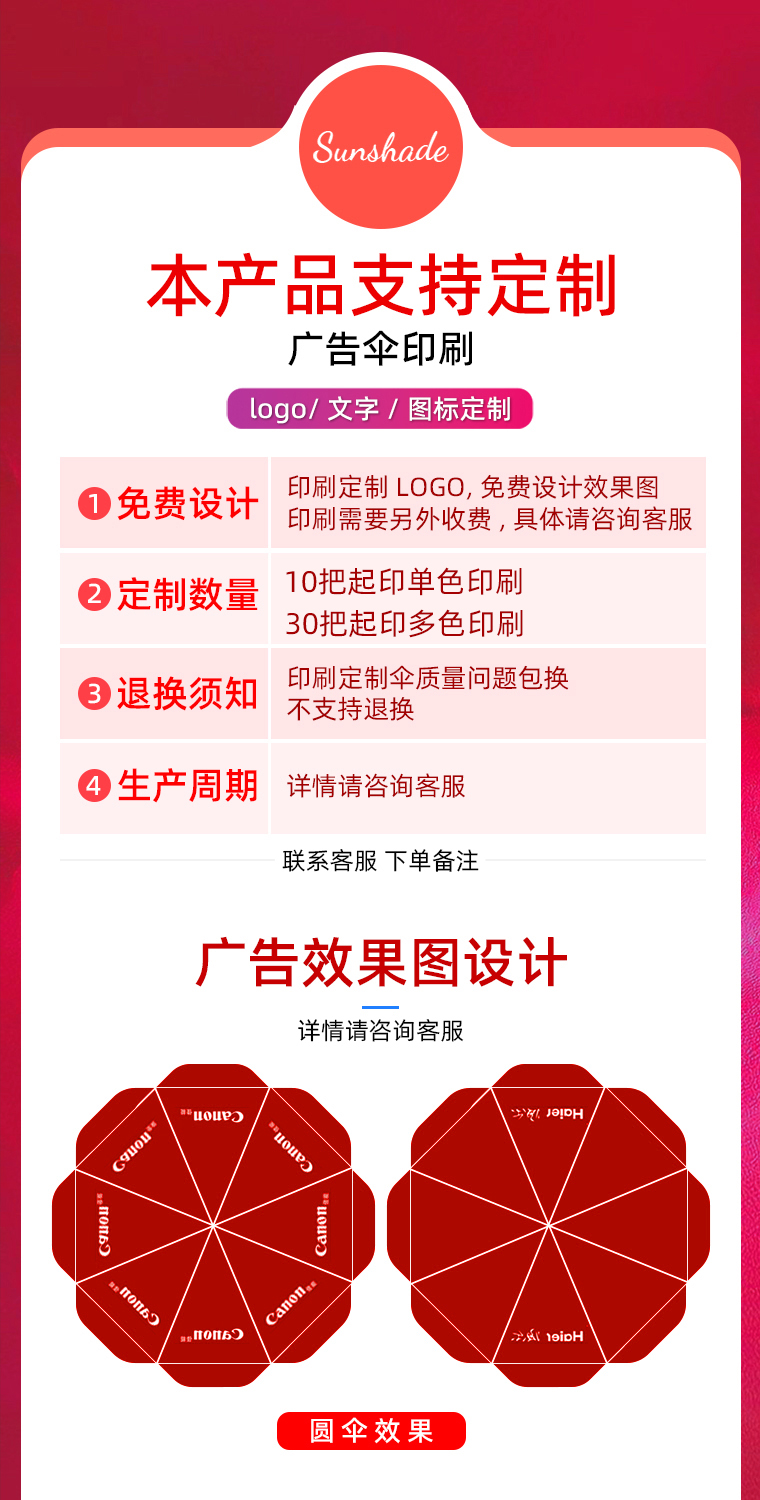 • [두꺼운 이중우산+방풍우산꽂이] 3.6M 대형 레드