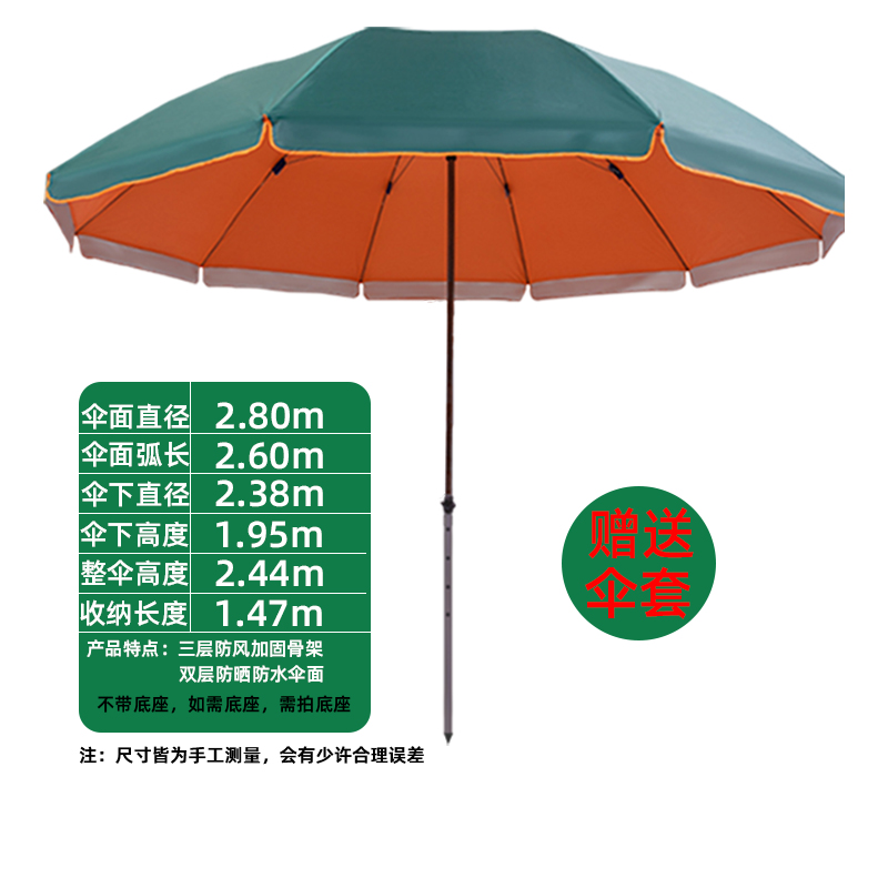 • [두꺼운 이중우산+방풍우산꽂이] 2.8M 미디엄 그린 오렌지 - 30L 베이스 포함