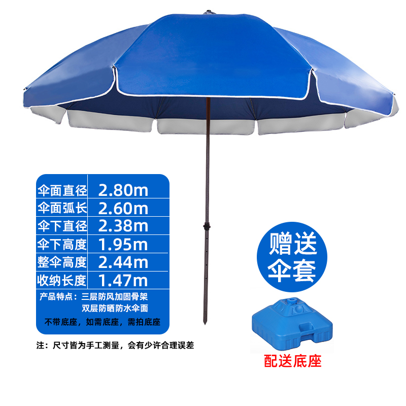 • [두꺼운 이중우산+방풍우산꽂이] 2.8M 미디엄 사파이어 블루 - 30L 베이스 포함