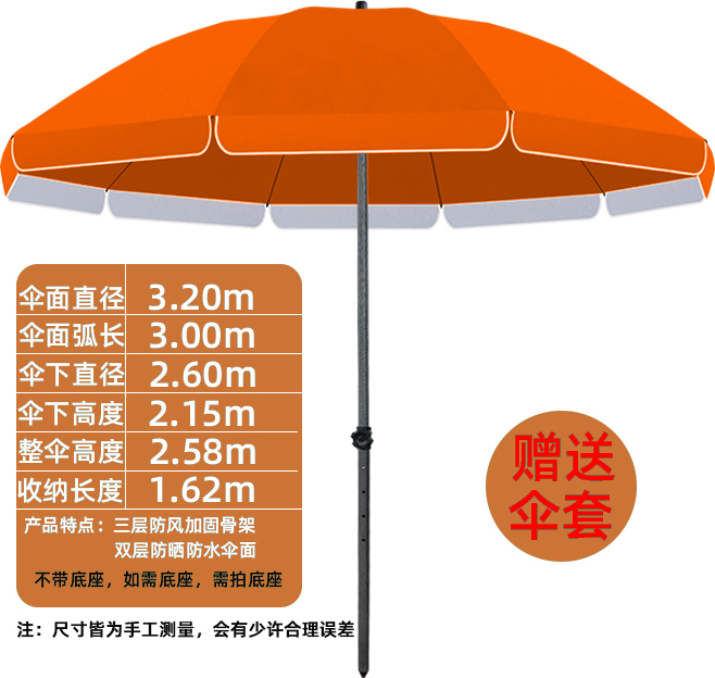 • [두꺼운 이중우산+방풍우산꽂이] 3.2M 중대형 오렌지 - 30L 베이스 포함