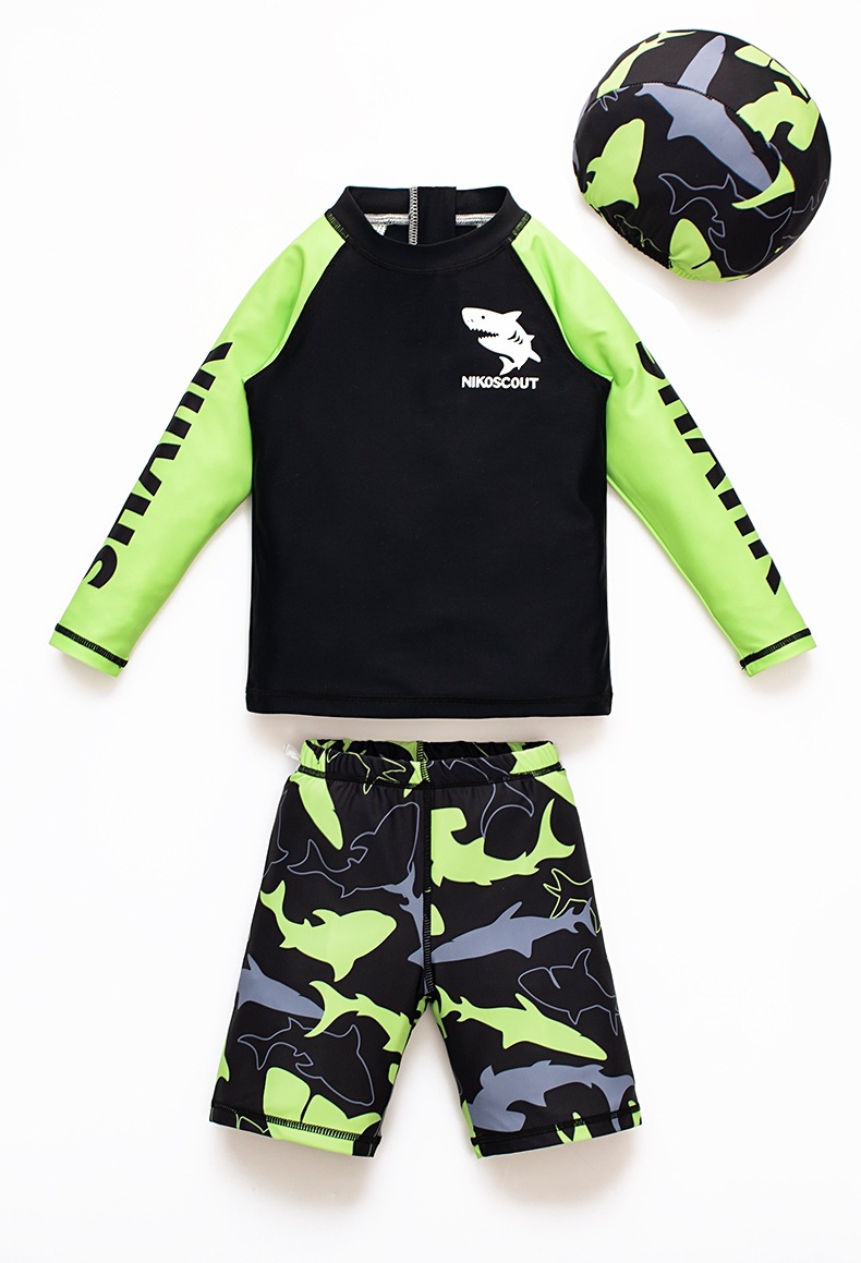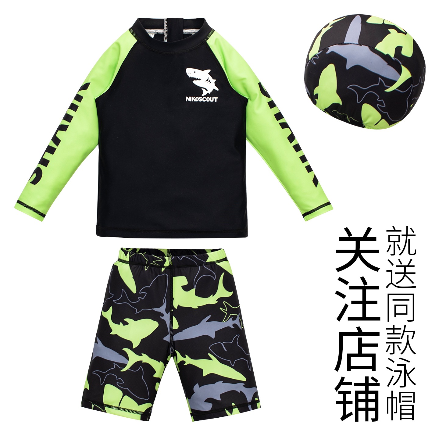 남아용 온천 야외 긴팔 스플릿 자외선 차단 속건성 중대형 아동 수영복 청소년