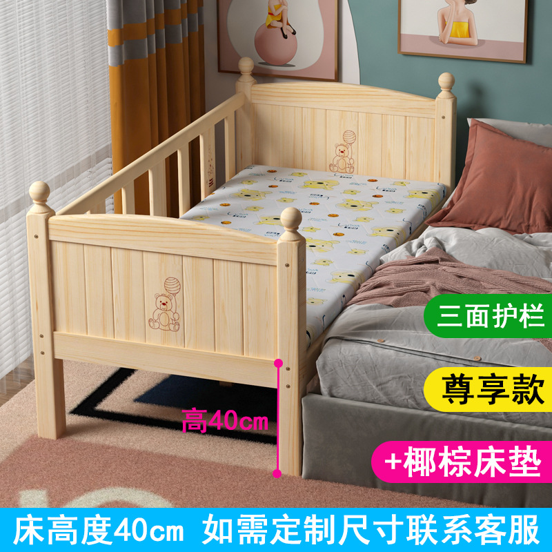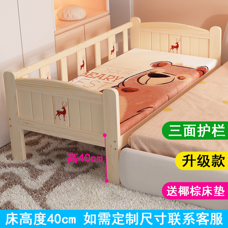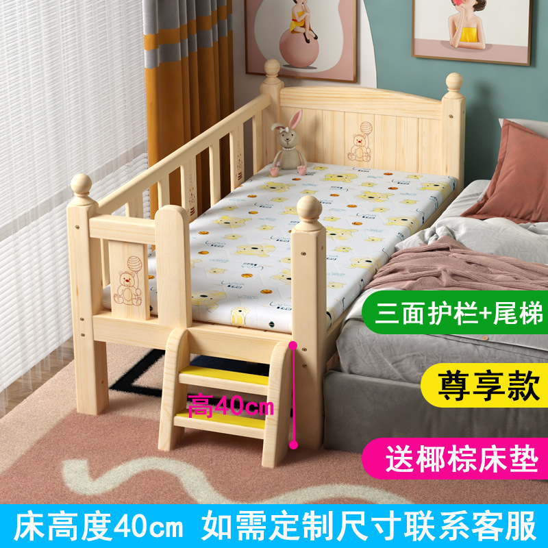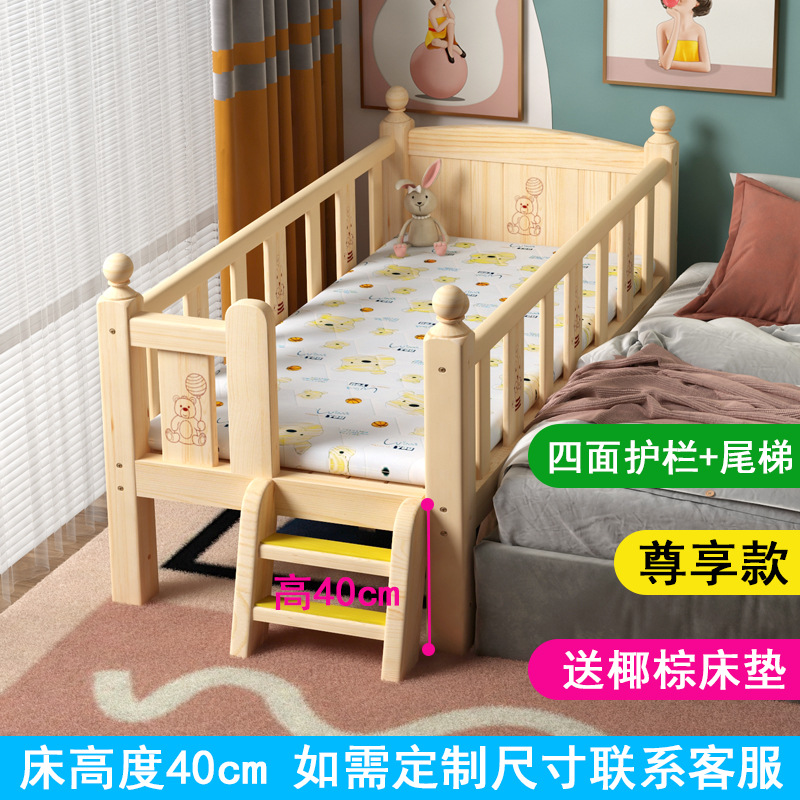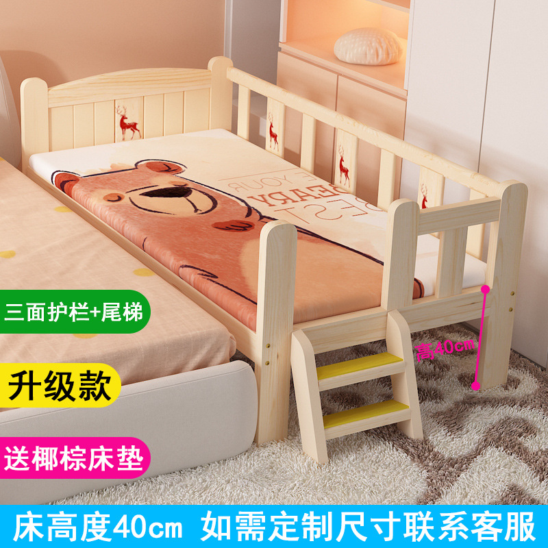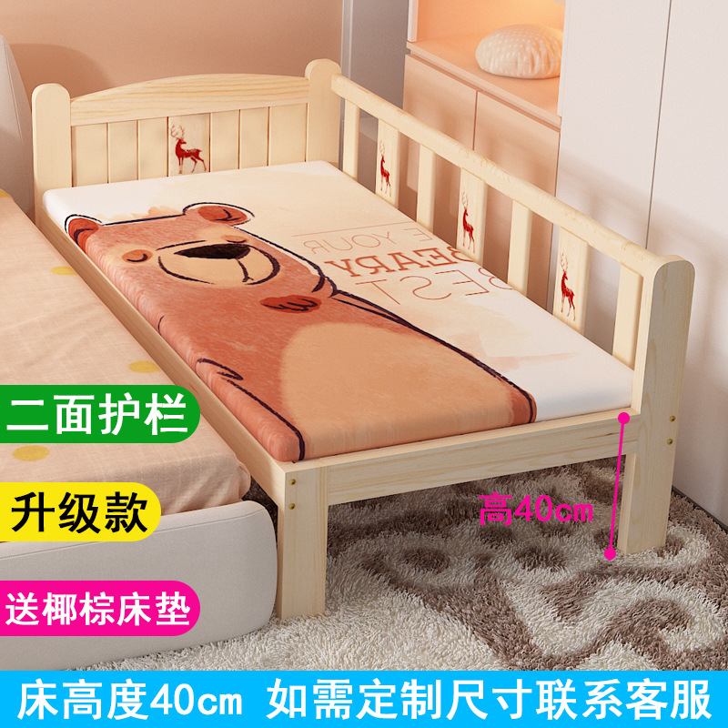 가드레일이 있는 원목 어린이 침대, 유아용 침대, 남아 및 여아 공주 침대, 싱글 침대 옆 침대, 확장 접합 대형 침대스토어 가기