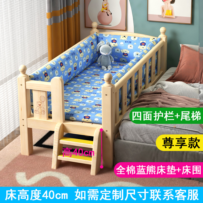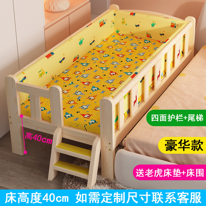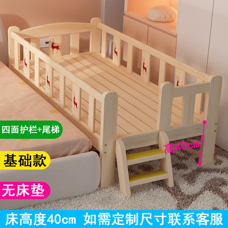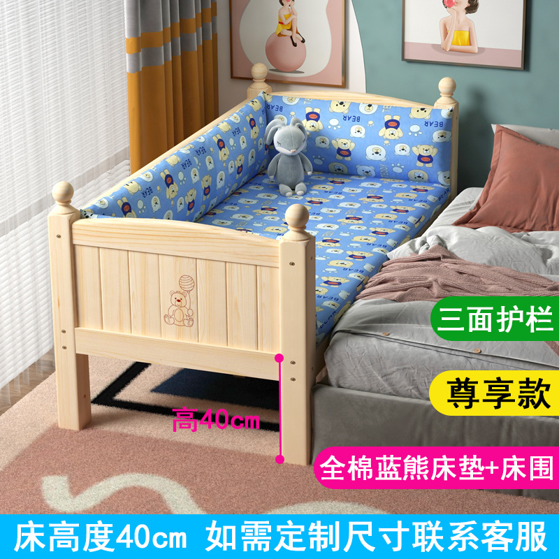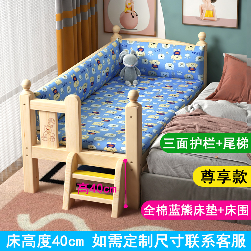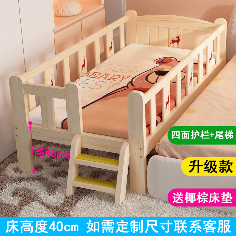 가드레일이 있는 원목 어린이 침대, 유아용 침대, 남아 및 여아 공주 침대, 싱글 침대 옆 침대, 확장 접합 대형 침대스토어 가기