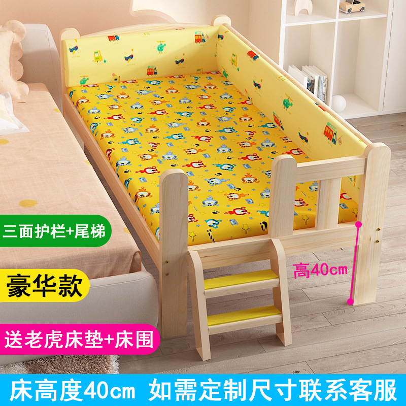 가드레일이 있는 원목 어린이 침대, 유아용 침대, 남아 및 여아 공주 침대, 싱글 침대 옆 침대, 확장 접합 대형 침대
