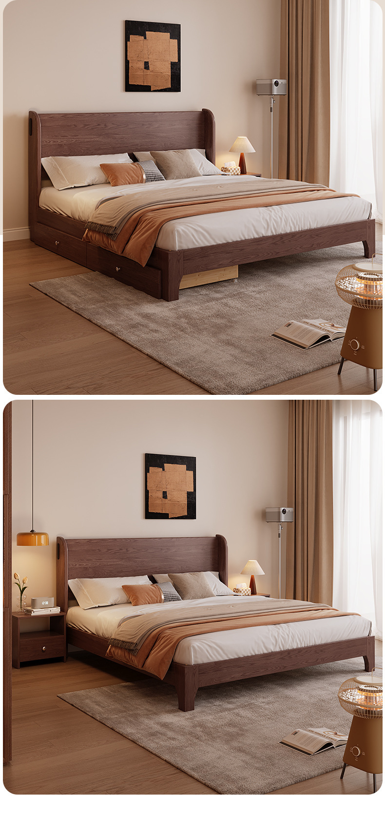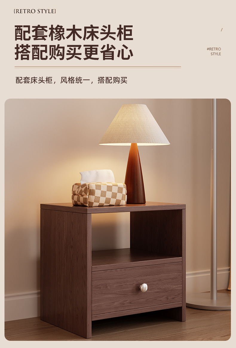 • 오크 베개 침대 + 20cm 매트리스 + 침대 옆 테이블 1