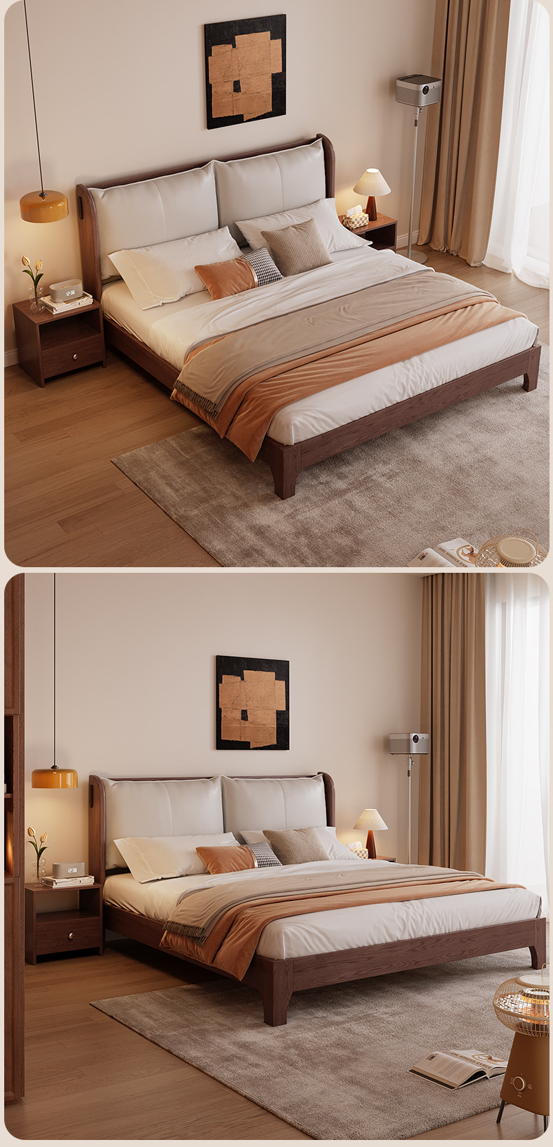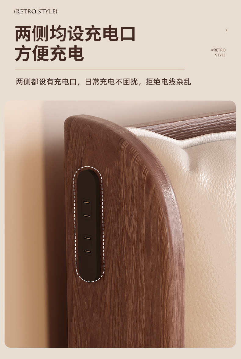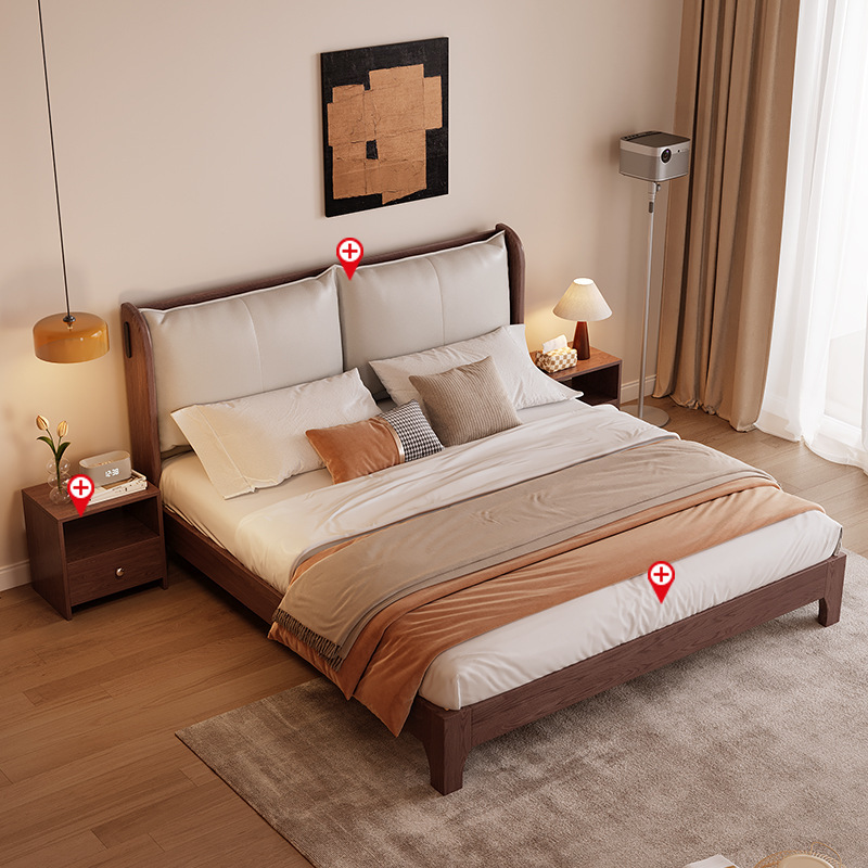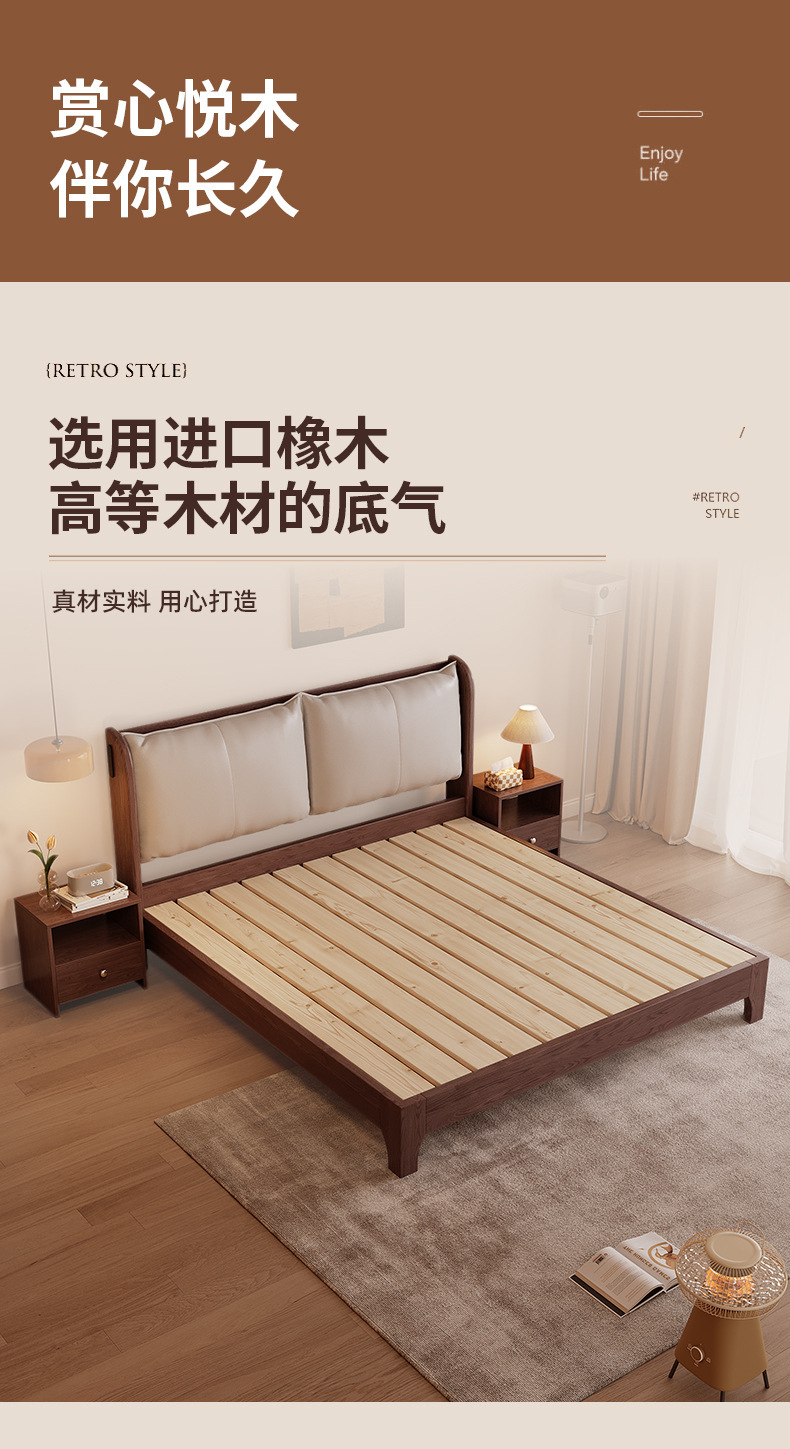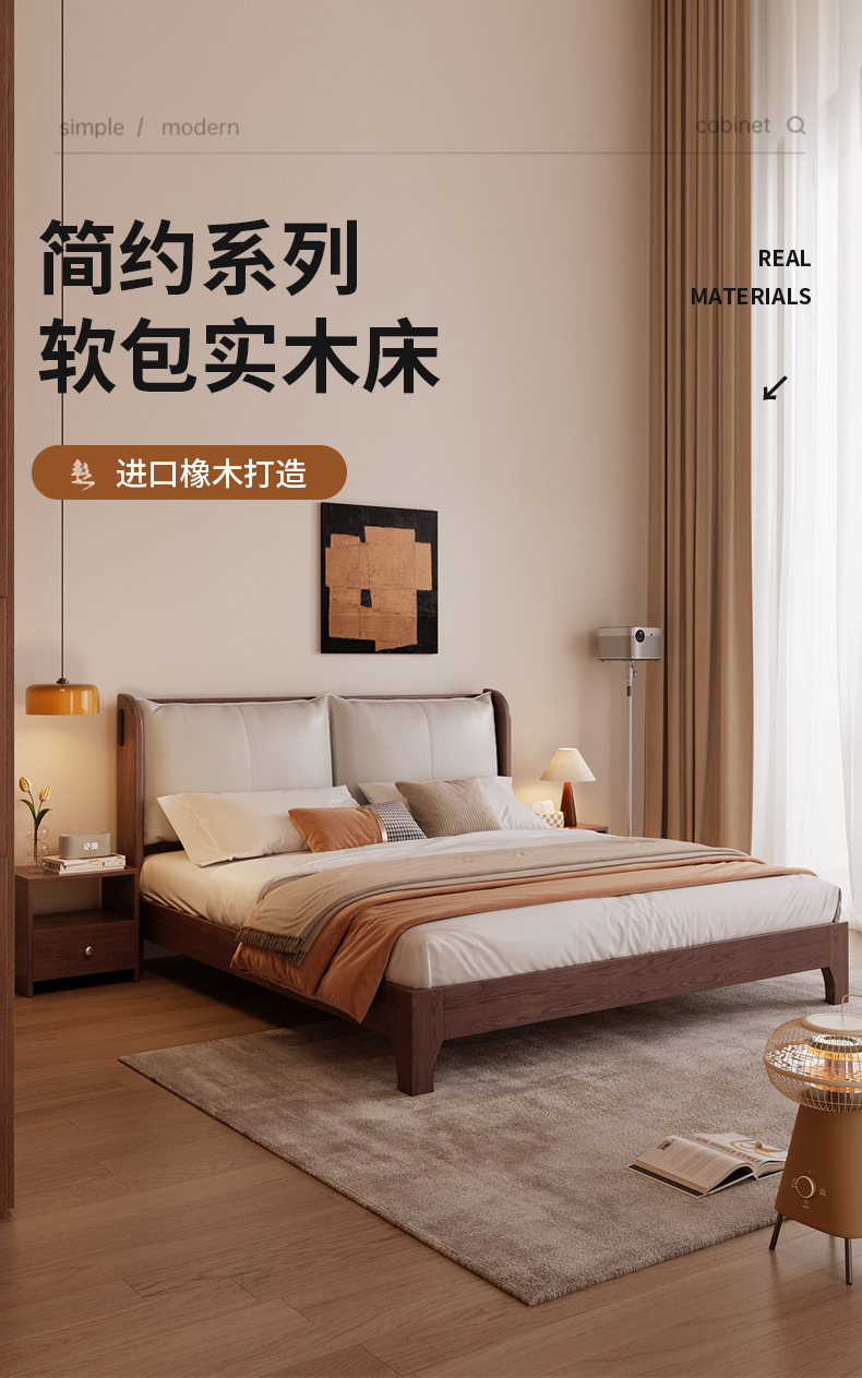 북유럽 미니멀리스트 오크 침대, 분위기 있는 부드러운 등받이, 현대적인 미니멀리스트, 작은 아파트, 가정용 침실, 1.8m 더블 침대