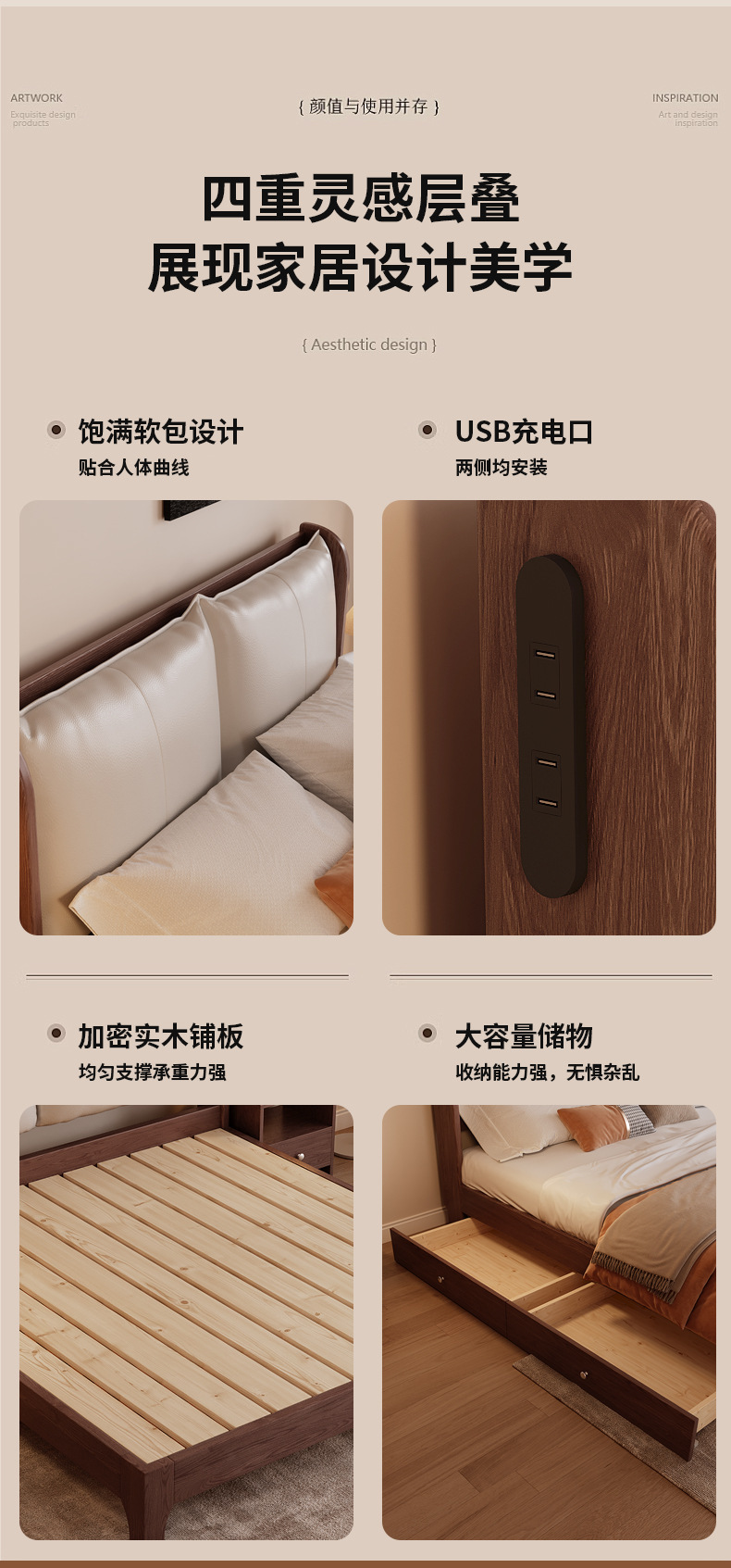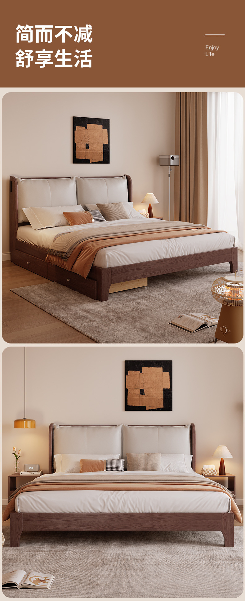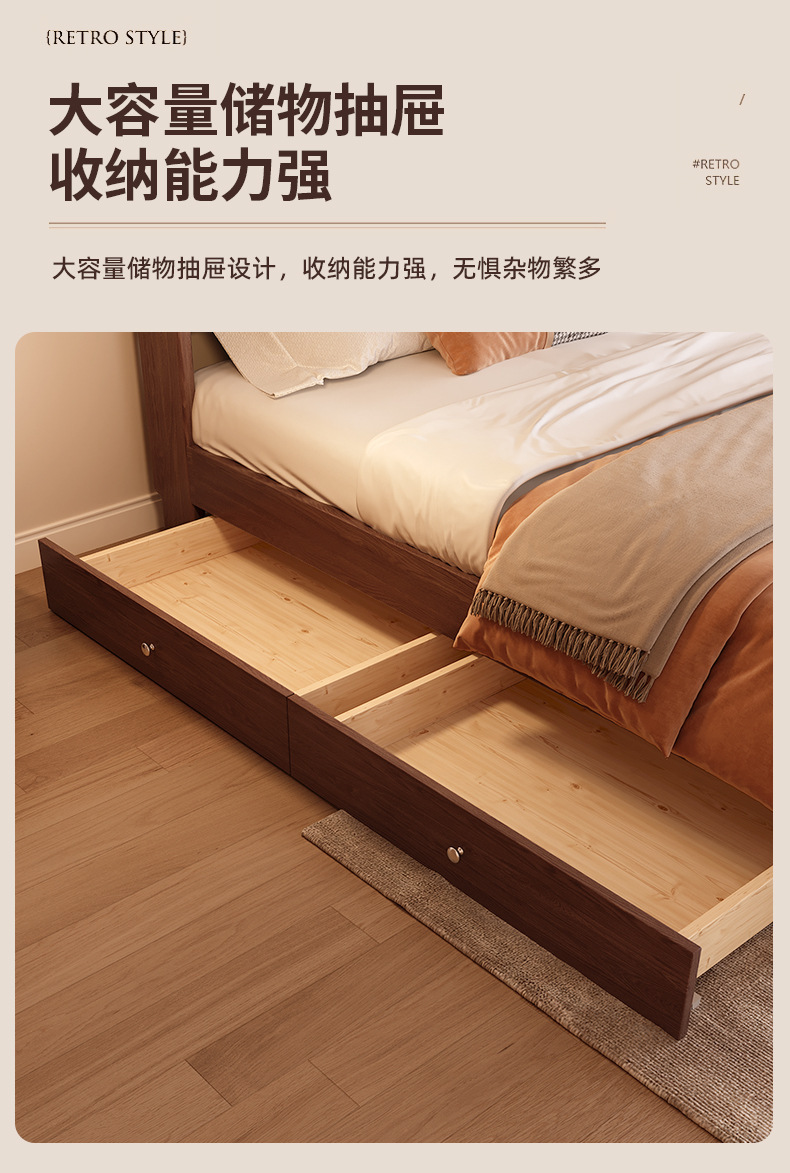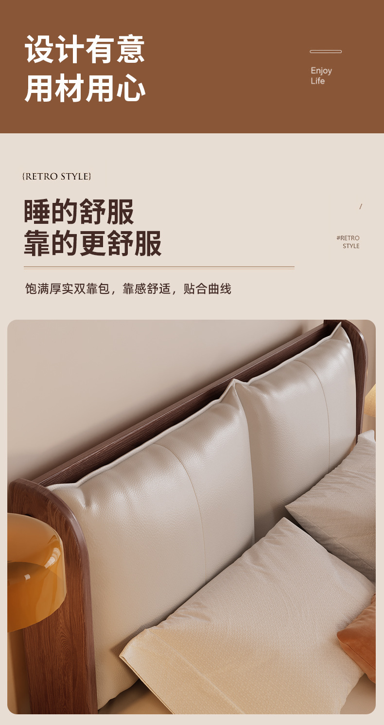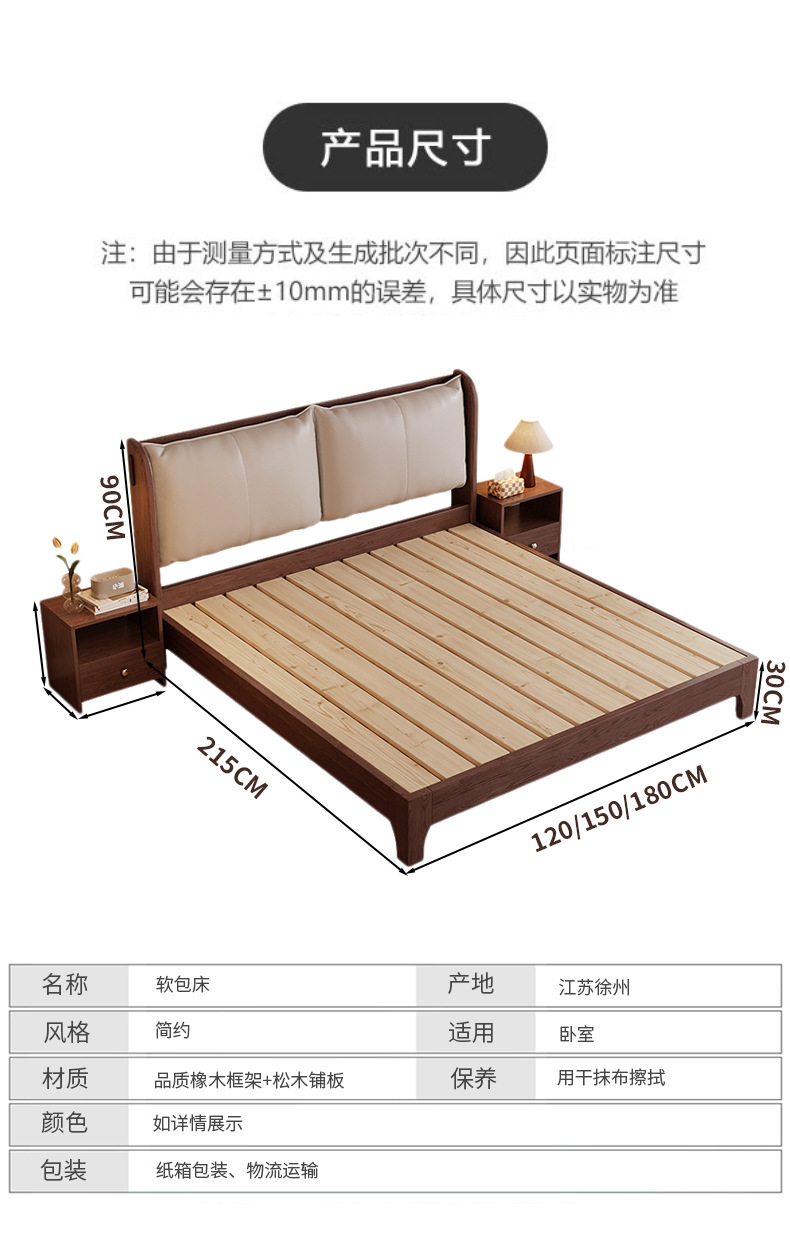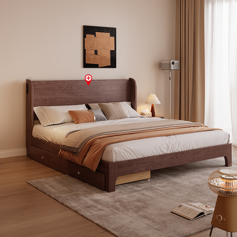 북유럽 미니멀리스트 오크 침대, 분위기 있는 부드러운 등받이, 현대적인 미니멀리스트, 작은 아파트, 가정용 침실, 1.8m 더블 침대스토어 가기