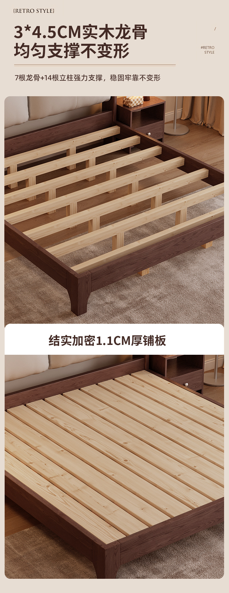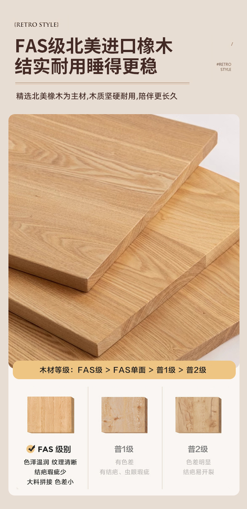 • 오크 베개 침대 + 5cm 매트리스 + 침대 옆 테이블 1