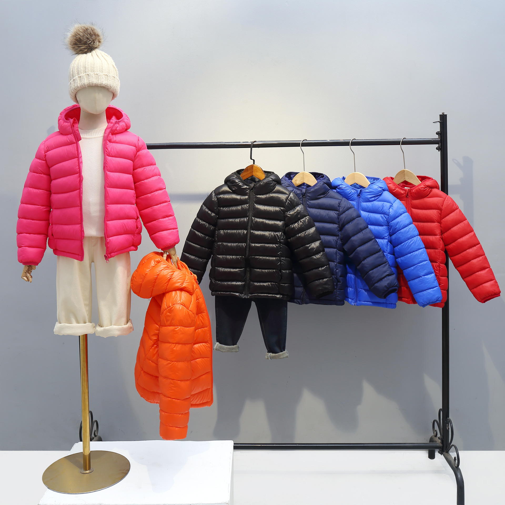 2025 가을 겨울 새로운 단색 경량 따뜻한 재킷 남성, 여성, 중대형 어린이용, 재고 있음, 공장 도매