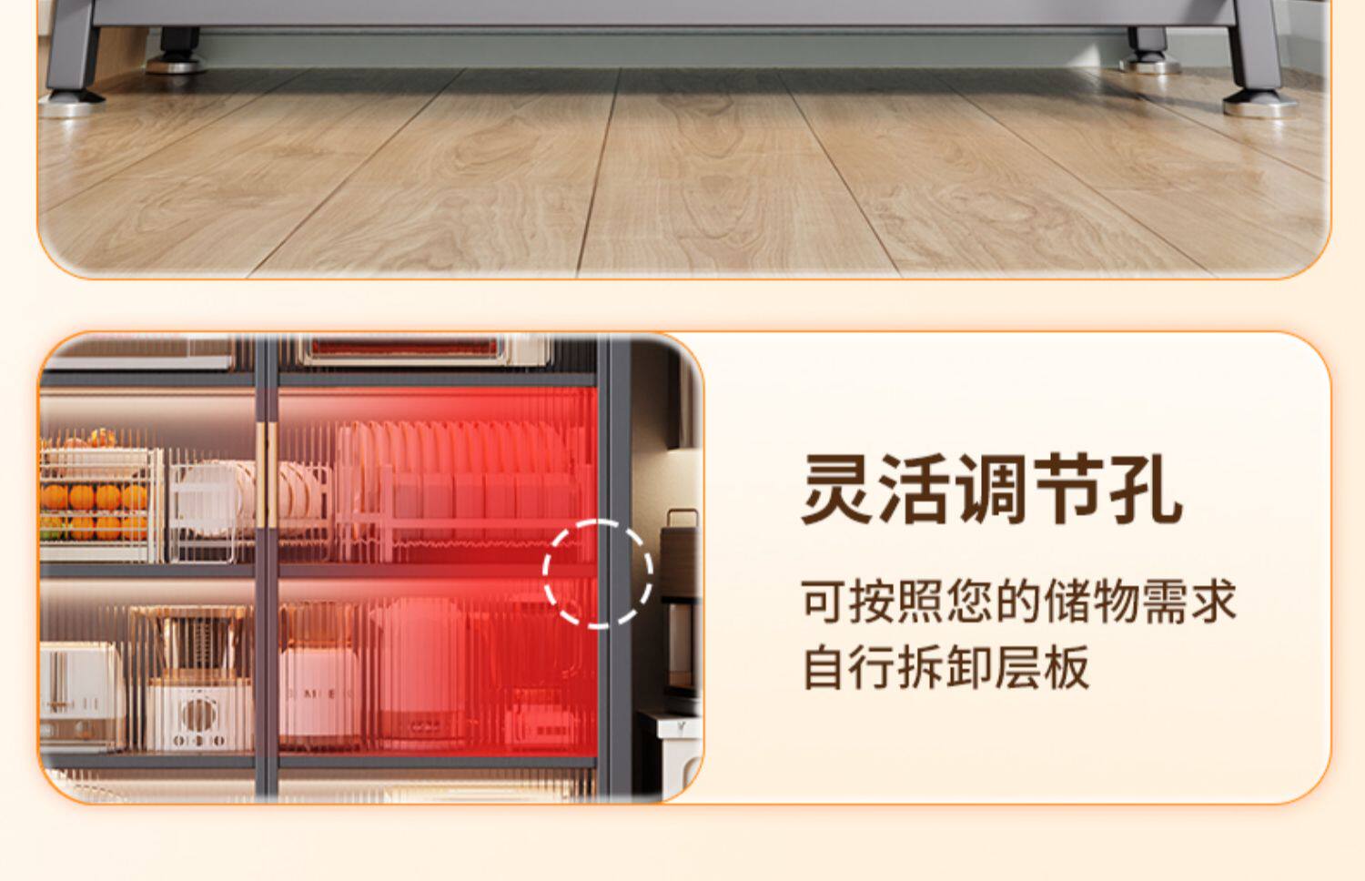 厨房置物架落地多层家用收纳柜子微波炉防尘橱柜柜子储物柜餐边柜