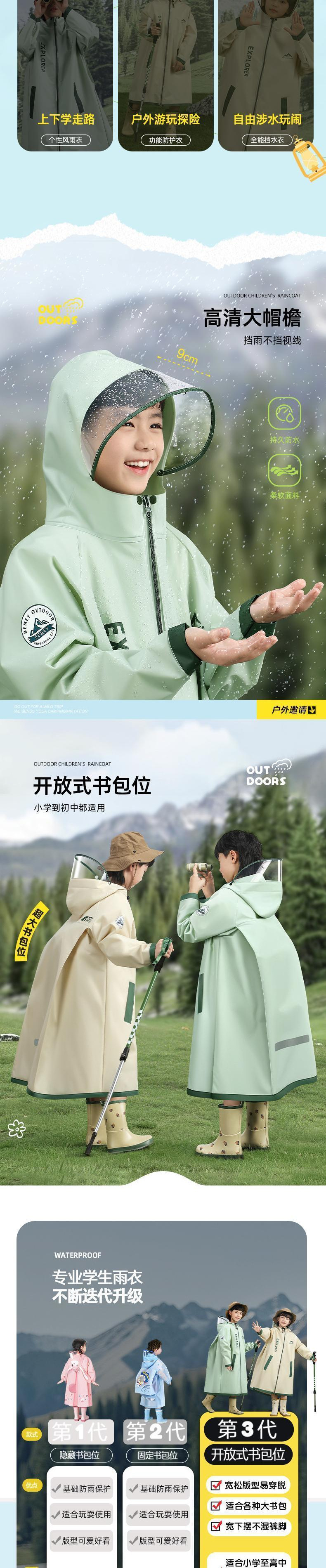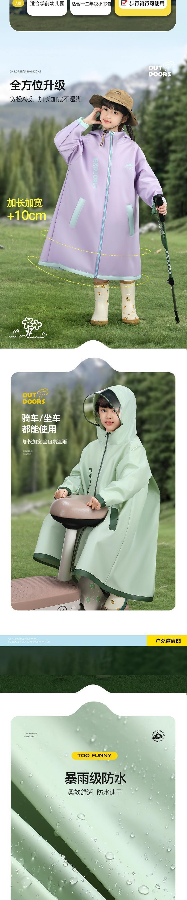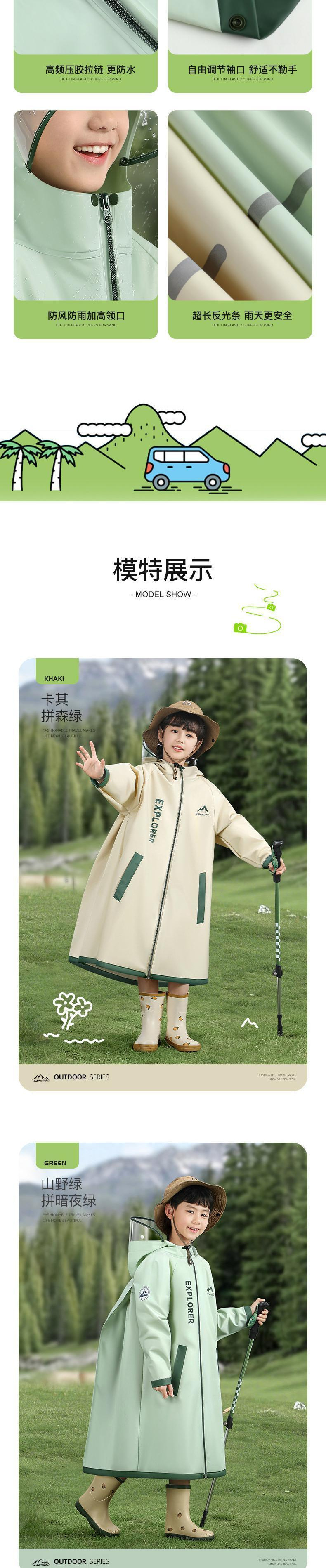 남학생과 여학생을 위한 새로운 어린이 비옷, 초등학생이 학교에 가기 위한 전신 방수, 책가방이 있는 특수 유치원, 비옷스토어 가기
