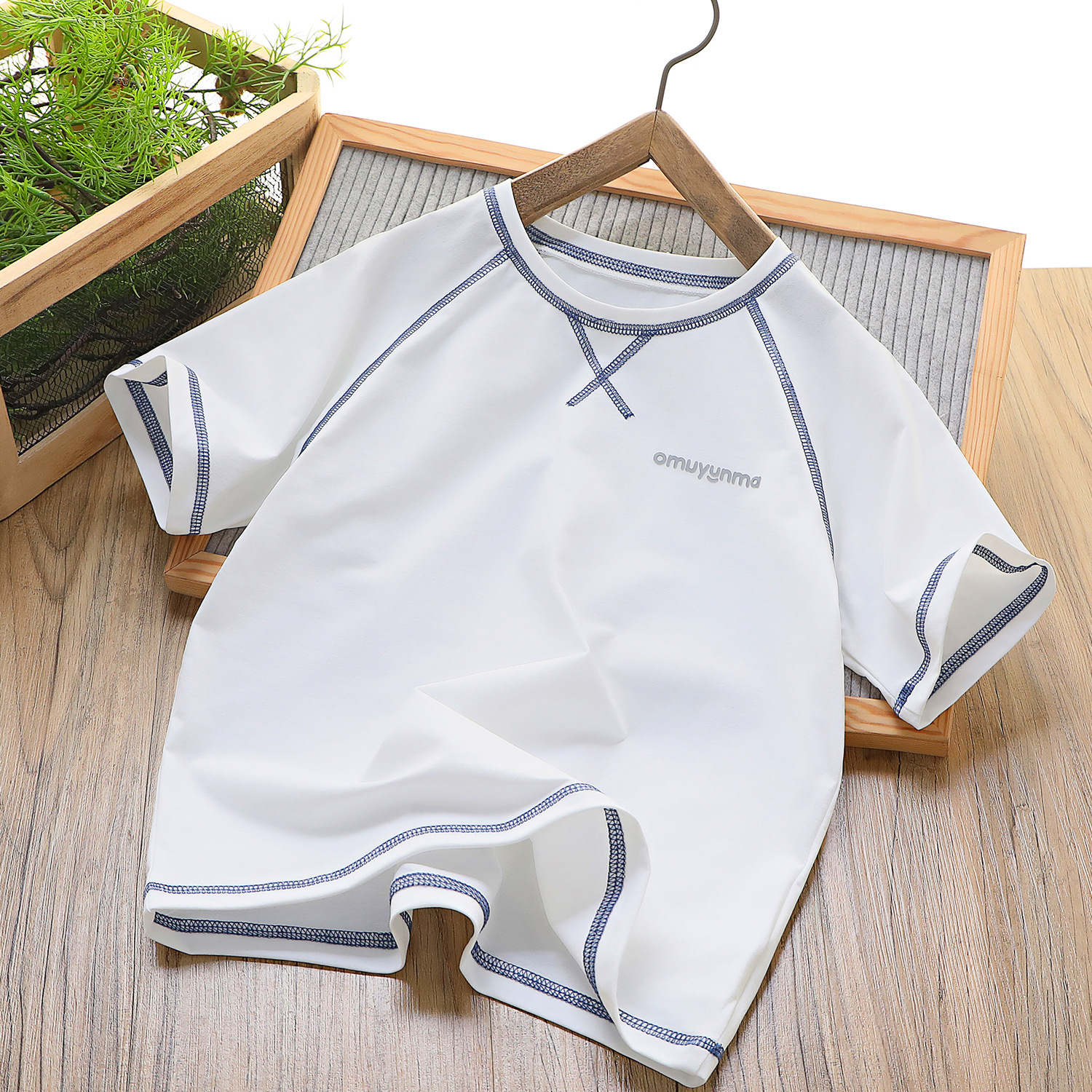 특별한 Qingdao Source Factory Zhongda Boys 여름 린넨 실크 반팔 속건성 주름 방지 항균 기능성 새 티셔츠스토어 가기