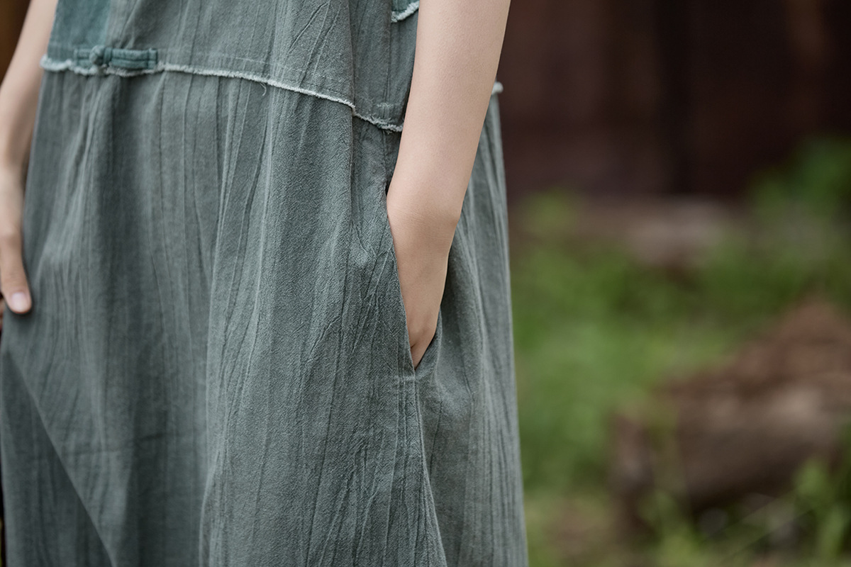 26 봄 여성복 린넨과 모시 소재의 패치워크 타이다이 롱 드레스, 오리지널 디자이너 스타일, 풍성하고 시원한 여성용 멜빵 원피스스토어 가기
