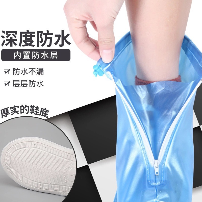 방수 신발 커버, 방수 성인 범용 남성 및 여성 여행 야외 사이클링 두꺼운 내마모성 중간 튜브 일회용 신발 커버스토어 가기