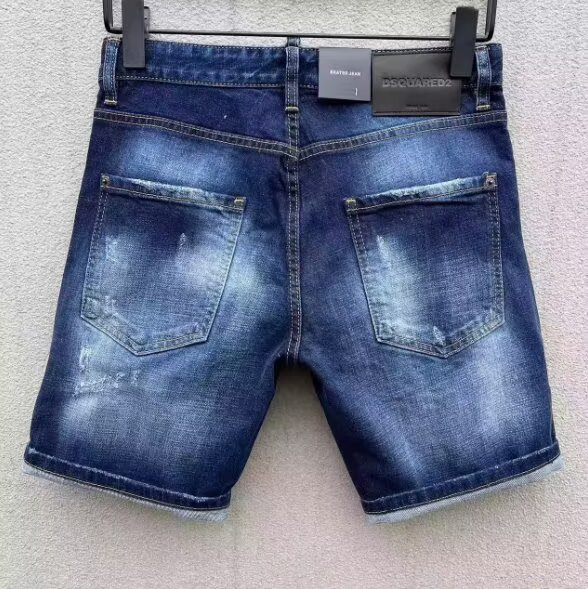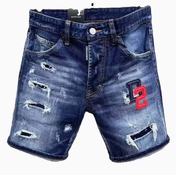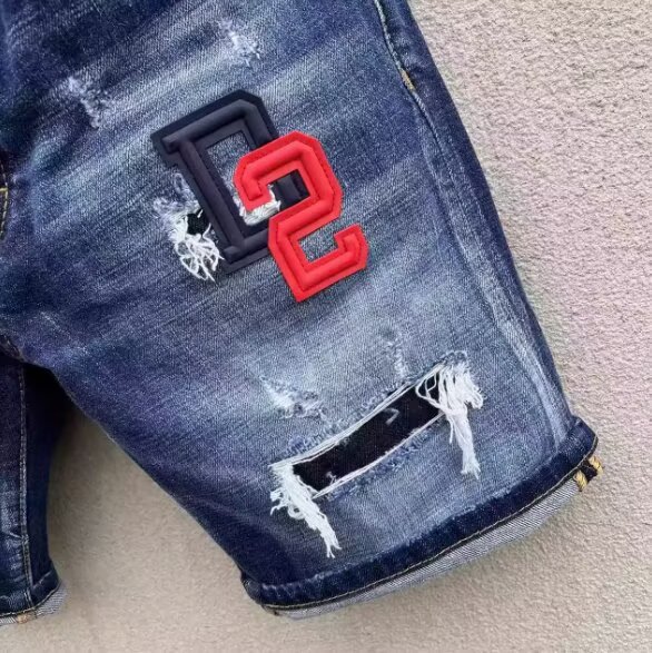유럽과 미국의 트렌디한 여름 찢어진 잉크 메추리잎 프린트 슬림핏 청바지 남성용 대외 무역 블루 반바지 5부 중간 바지스토어 가기