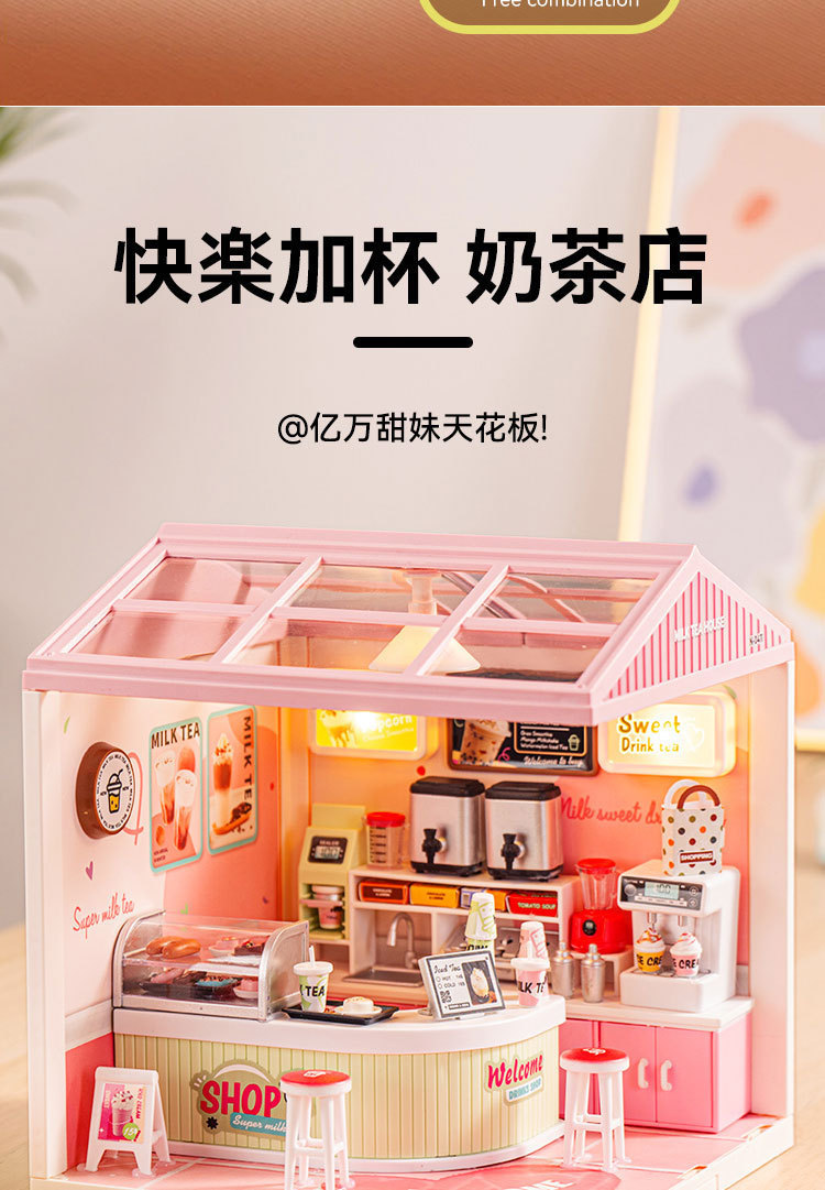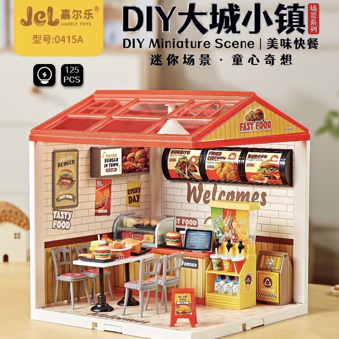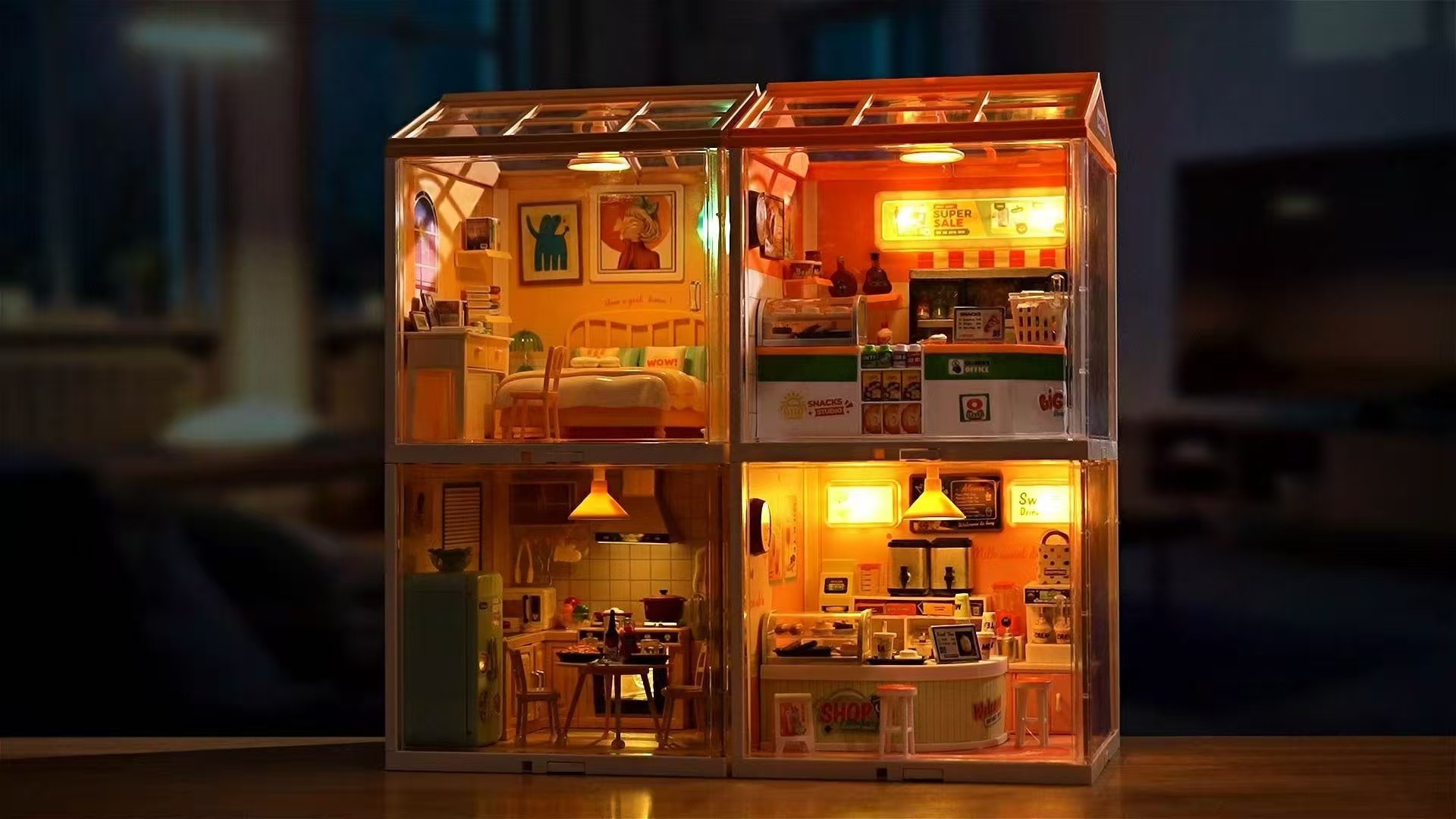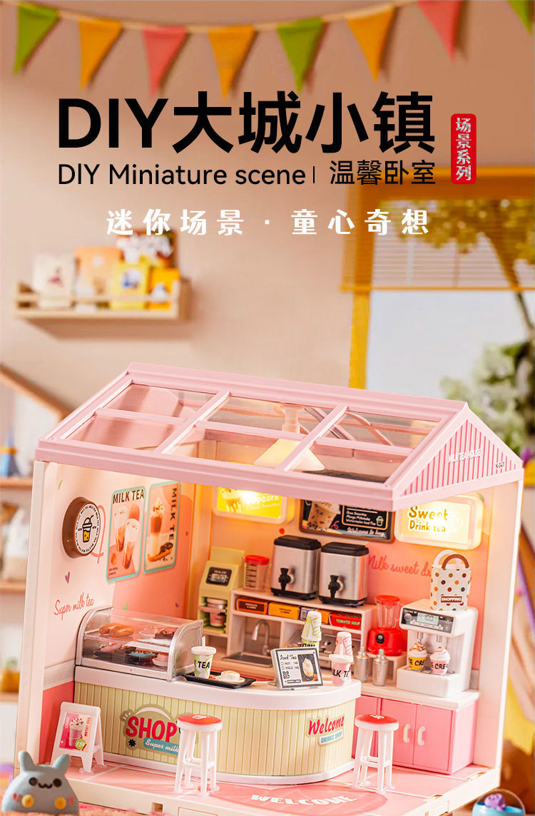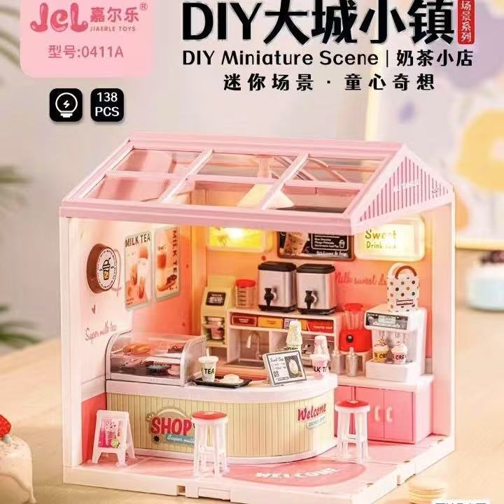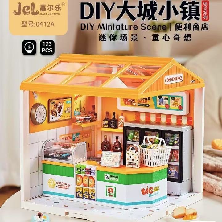 미니어처 하우스 미니 주방 상점 빌딩 블록 교육 장난감 조립 모델 diy 캐빈 침실 장면 선물스토어 가기