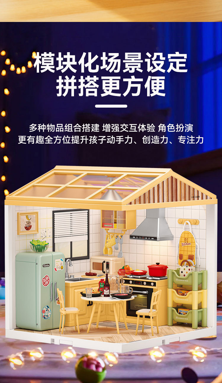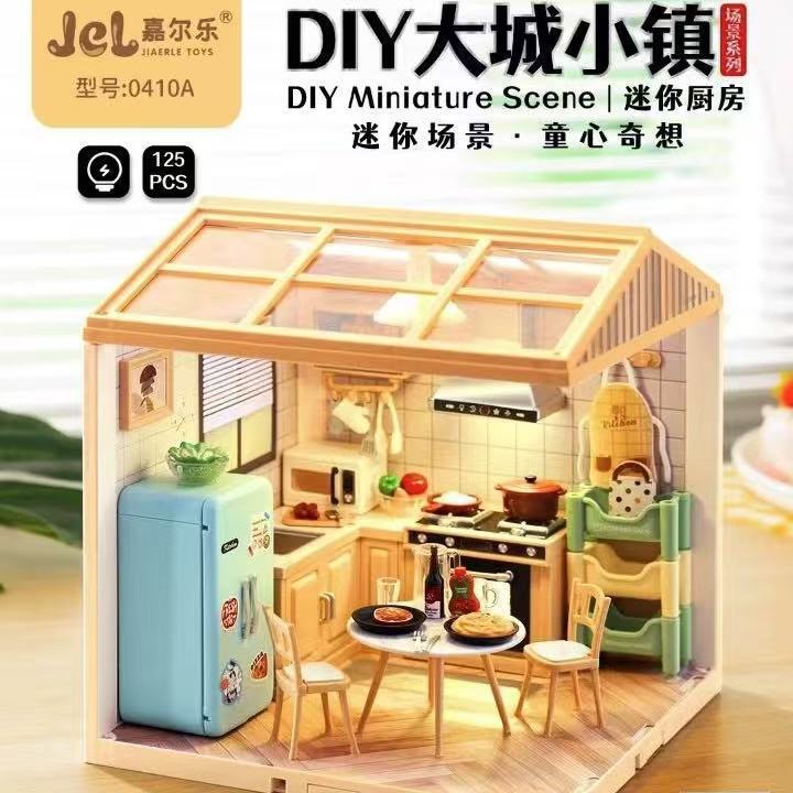 미니어처 하우스 미니 주방 상점 빌딩 블록 교육 장난감 조립 모델 diy 캐빈 침실 장면 선물