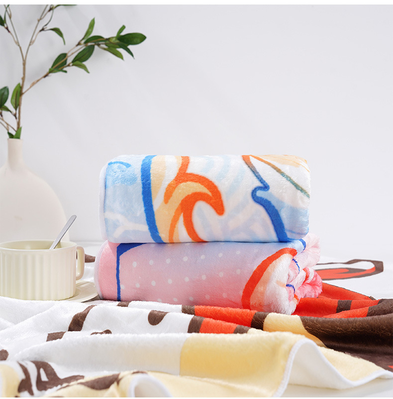 제조업체는 부드럽고 흡수성이 뛰어난 전체 인쇄 패턴 점심 담요를 생산하고 사진으로 맞춤형 디지털 인쇄 플란넬 담요를 생산합니다.스토어 가기