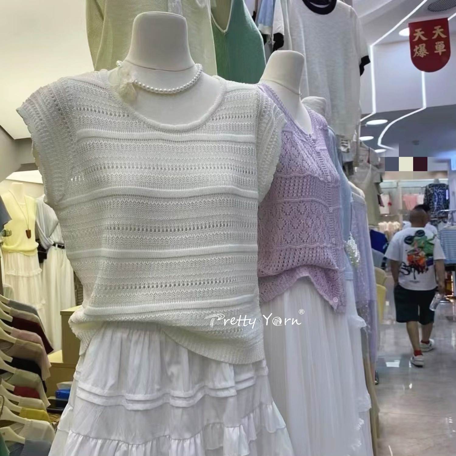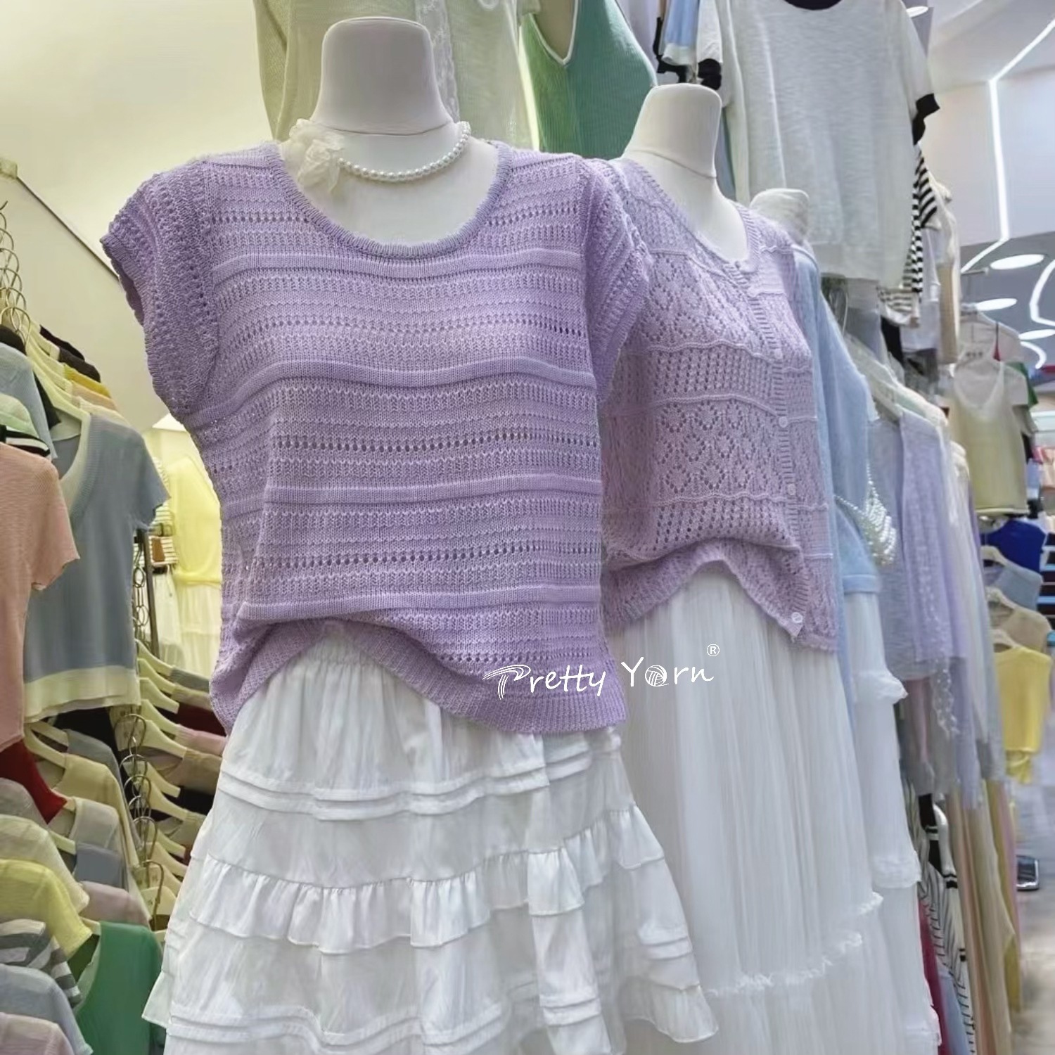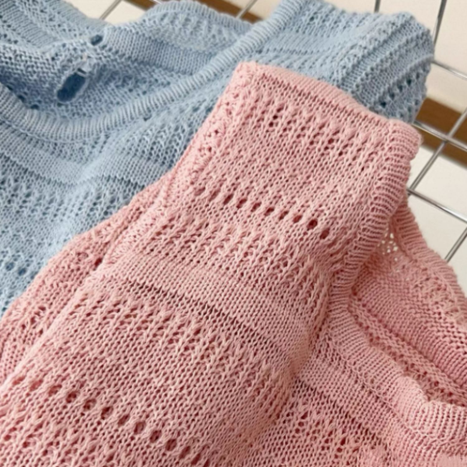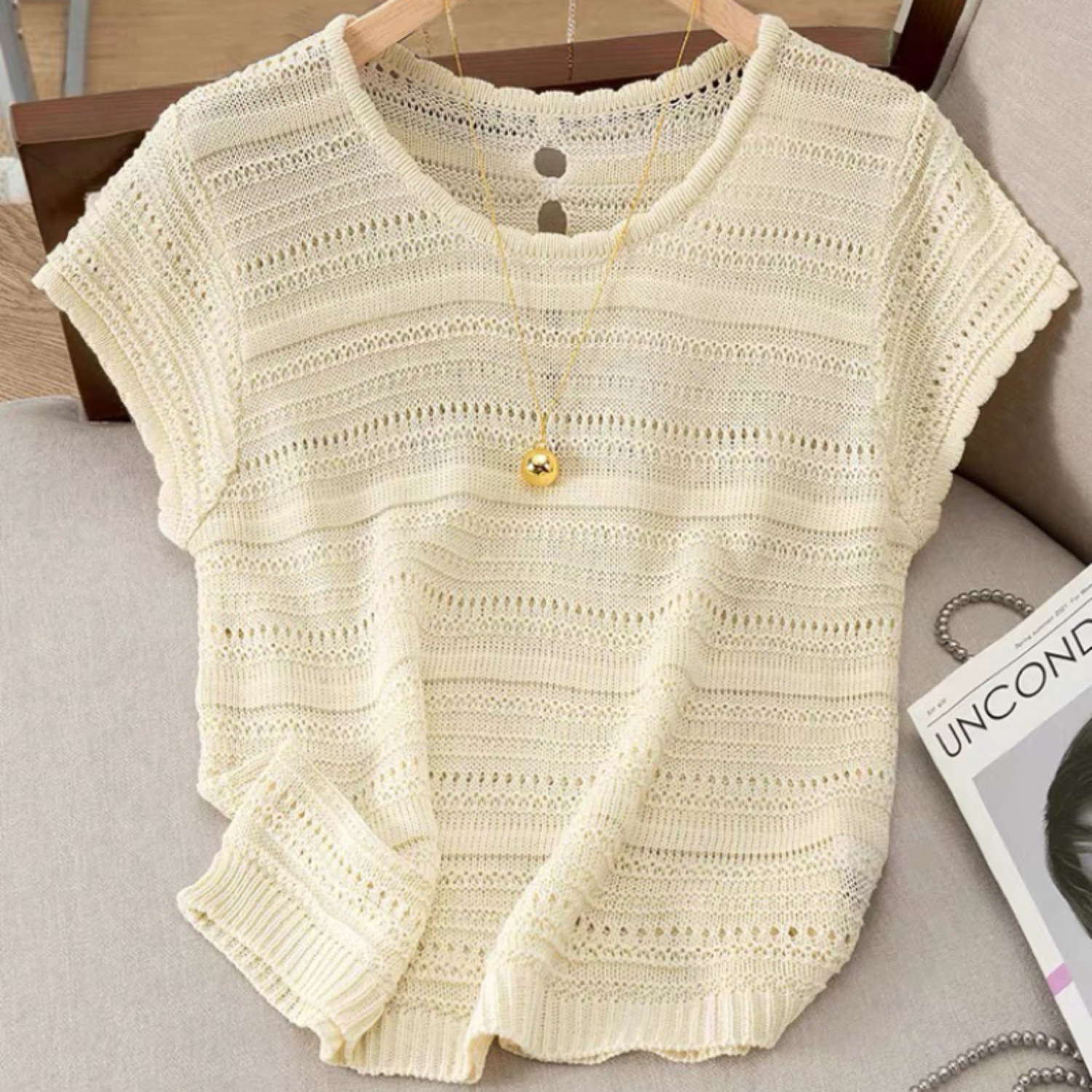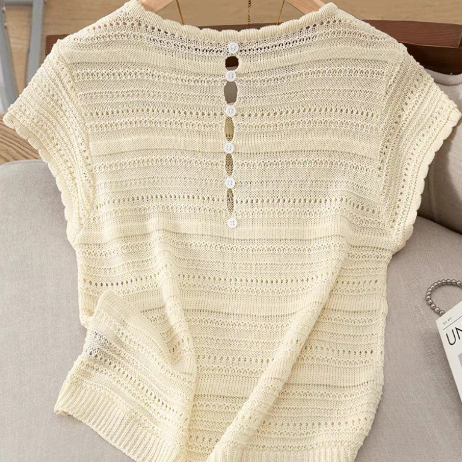 여성을위한 프렌치 백 버튼 중공 디자인 탑 니트 스웨터 2025 여름 신제품 하이 엔드 메쉬 블라우스스토어 가기