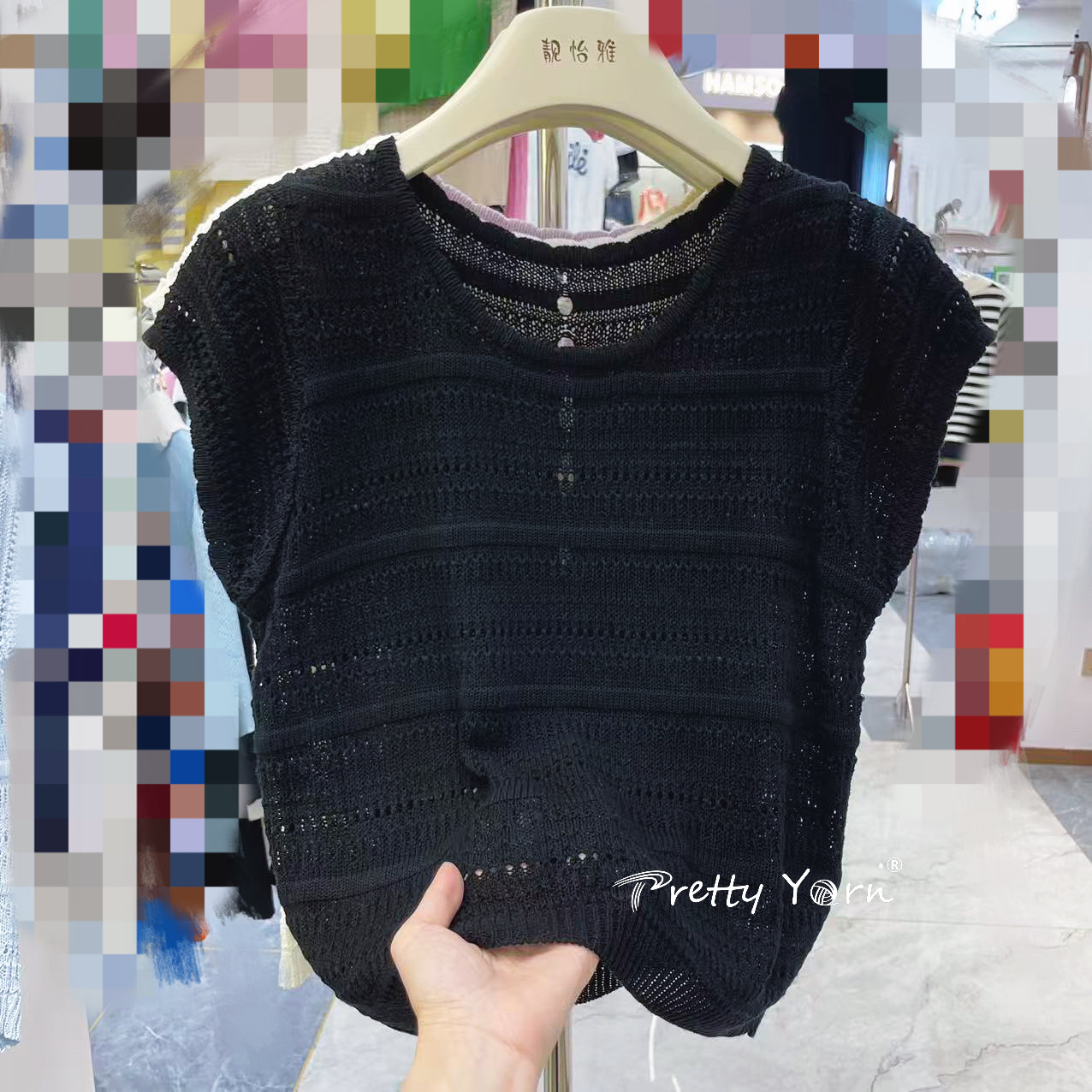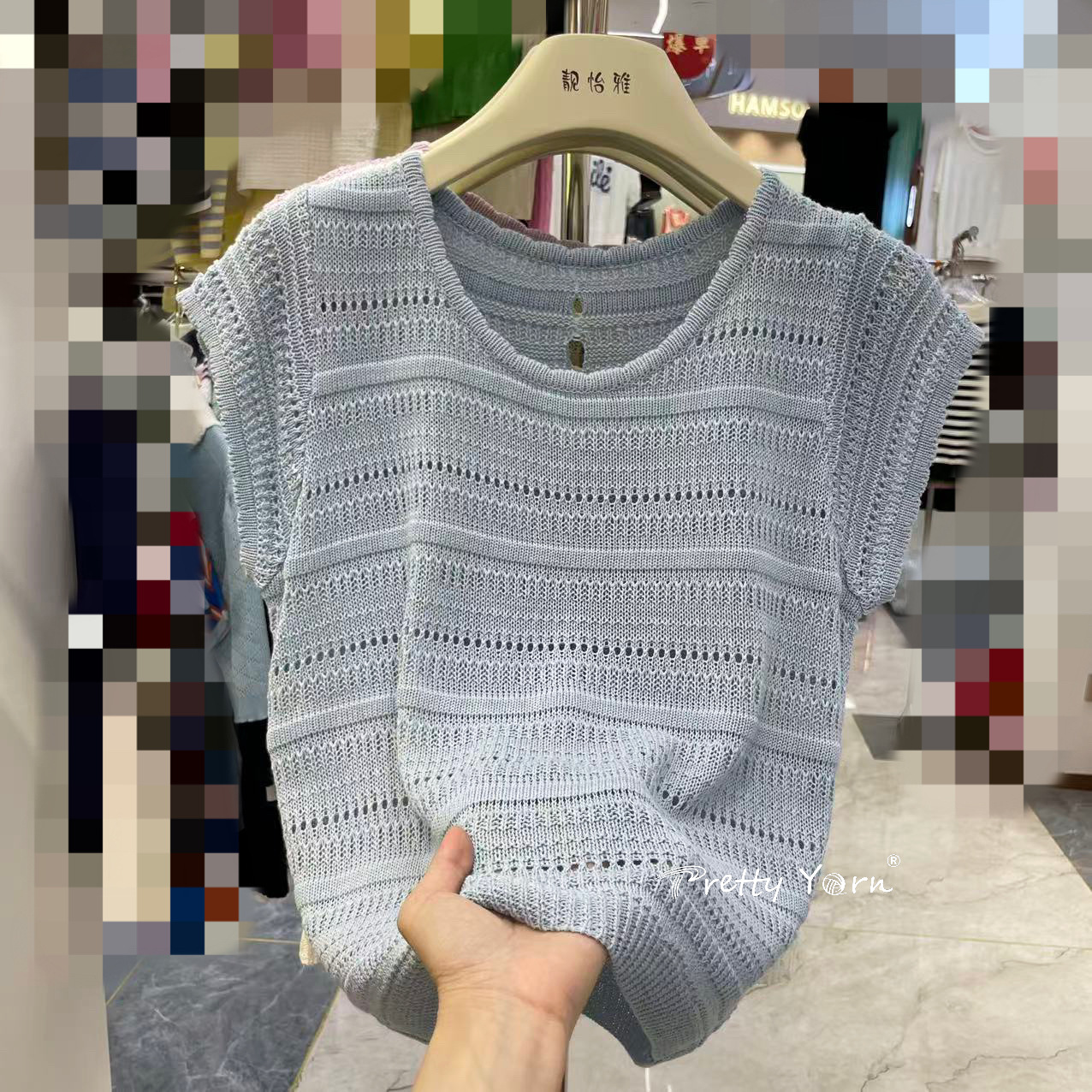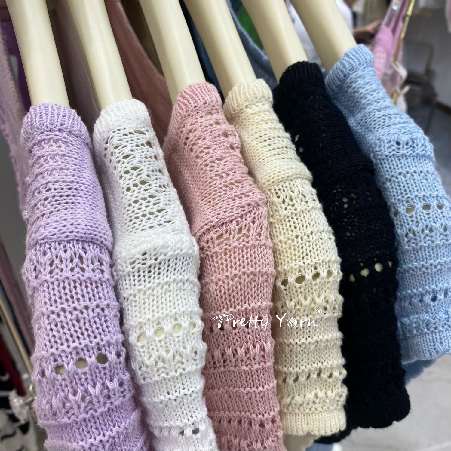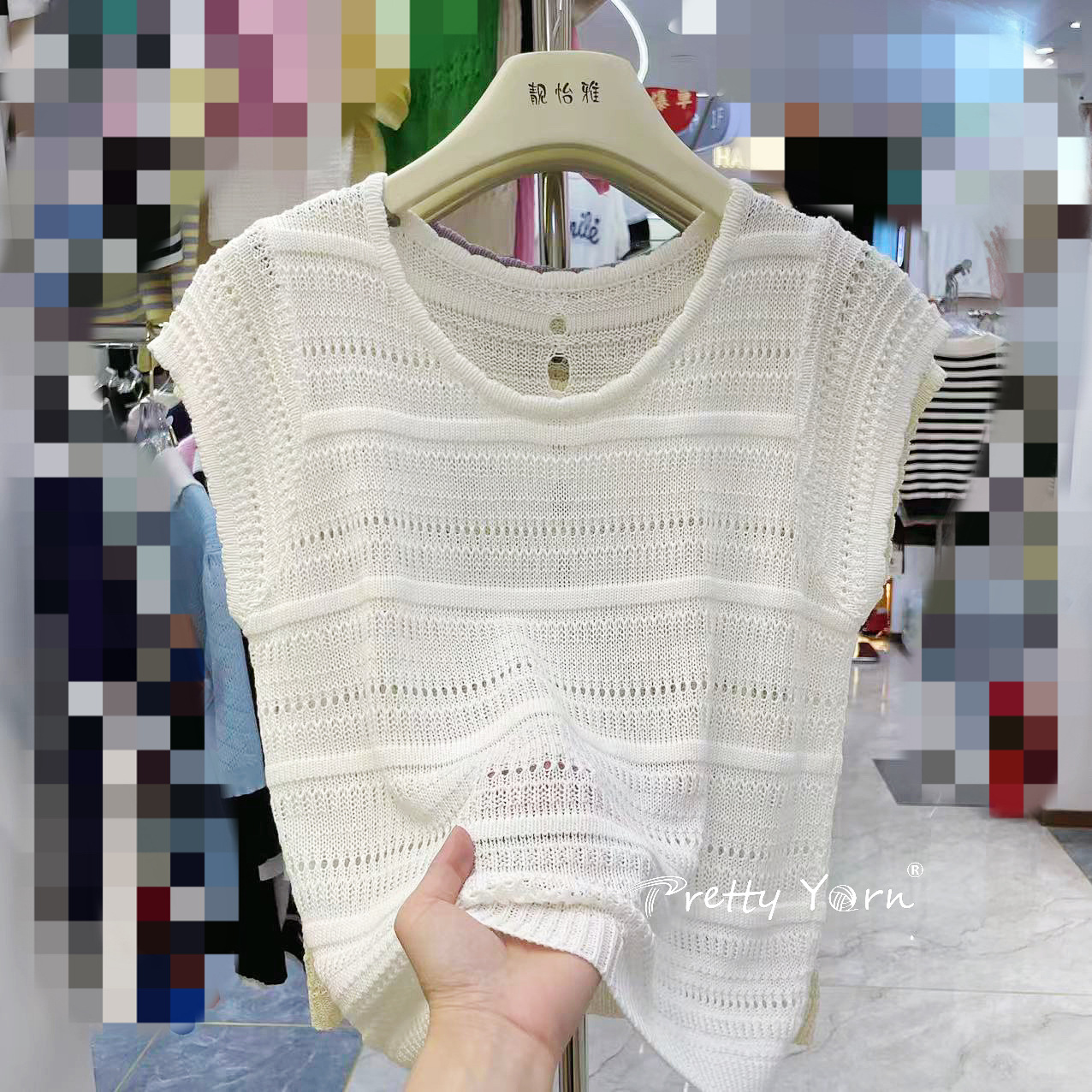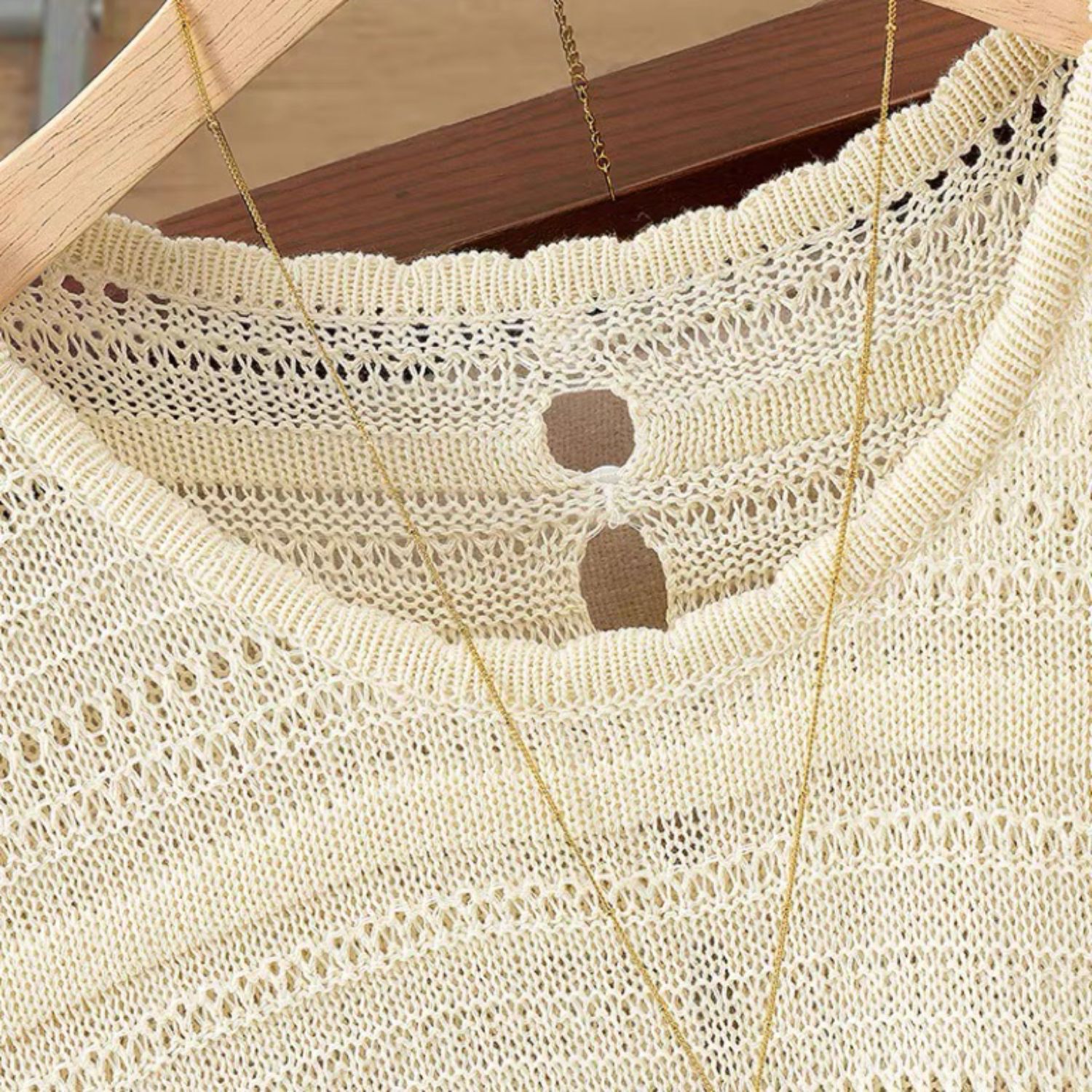 여성을위한 프렌치 백 버튼 중공 디자인 탑 니트 스웨터 2025 여름 신제품 하이 엔드 메쉬 블라우스스토어 가기