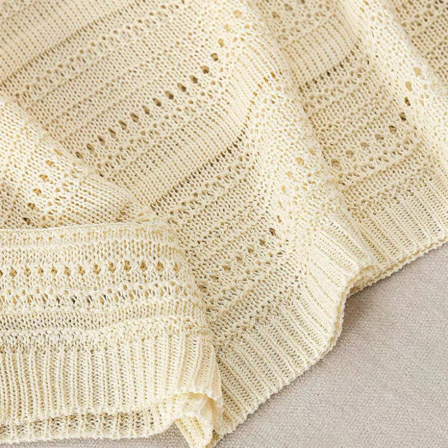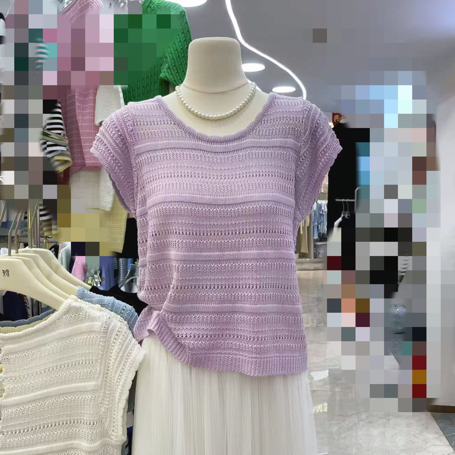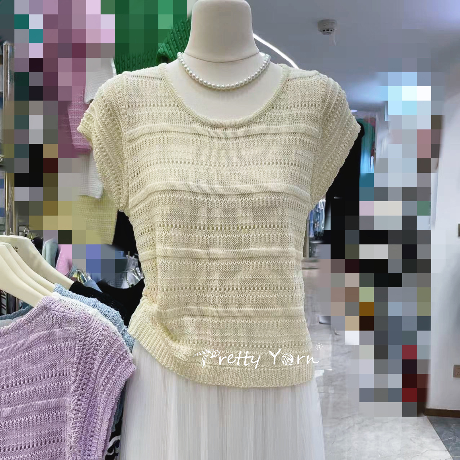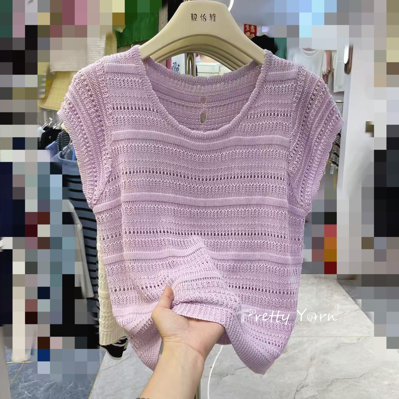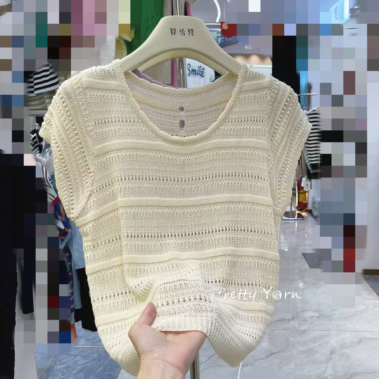 여성을위한 프렌치 백 버튼 중공 디자인 탑 니트 스웨터 2025 여름 신제품 하이 엔드 메쉬 블라우스스토어 가기