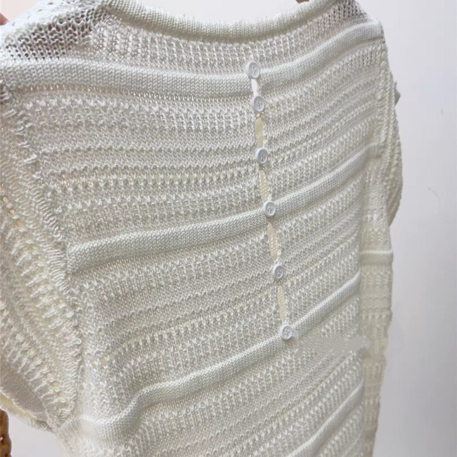 여성을위한 프렌치 백 버튼 중공 디자인 탑 니트 스웨터 2025 여름 신제품 하이 엔드 메쉬 블라우스