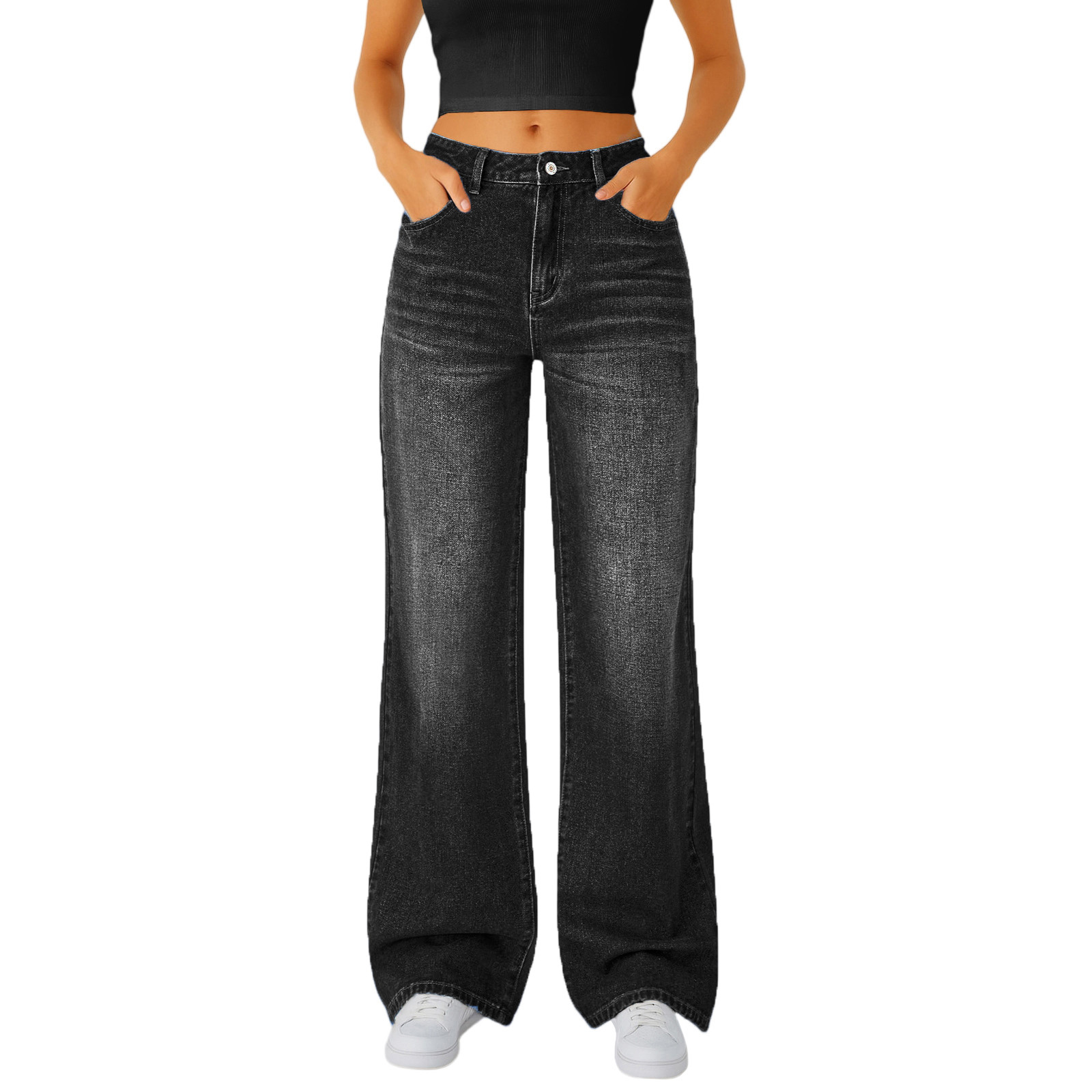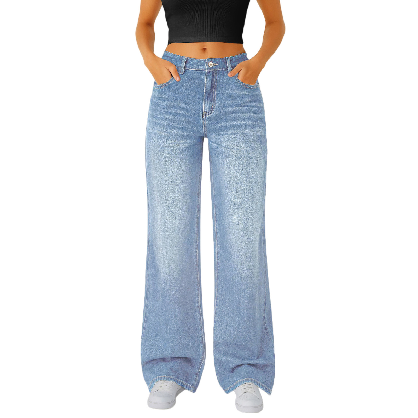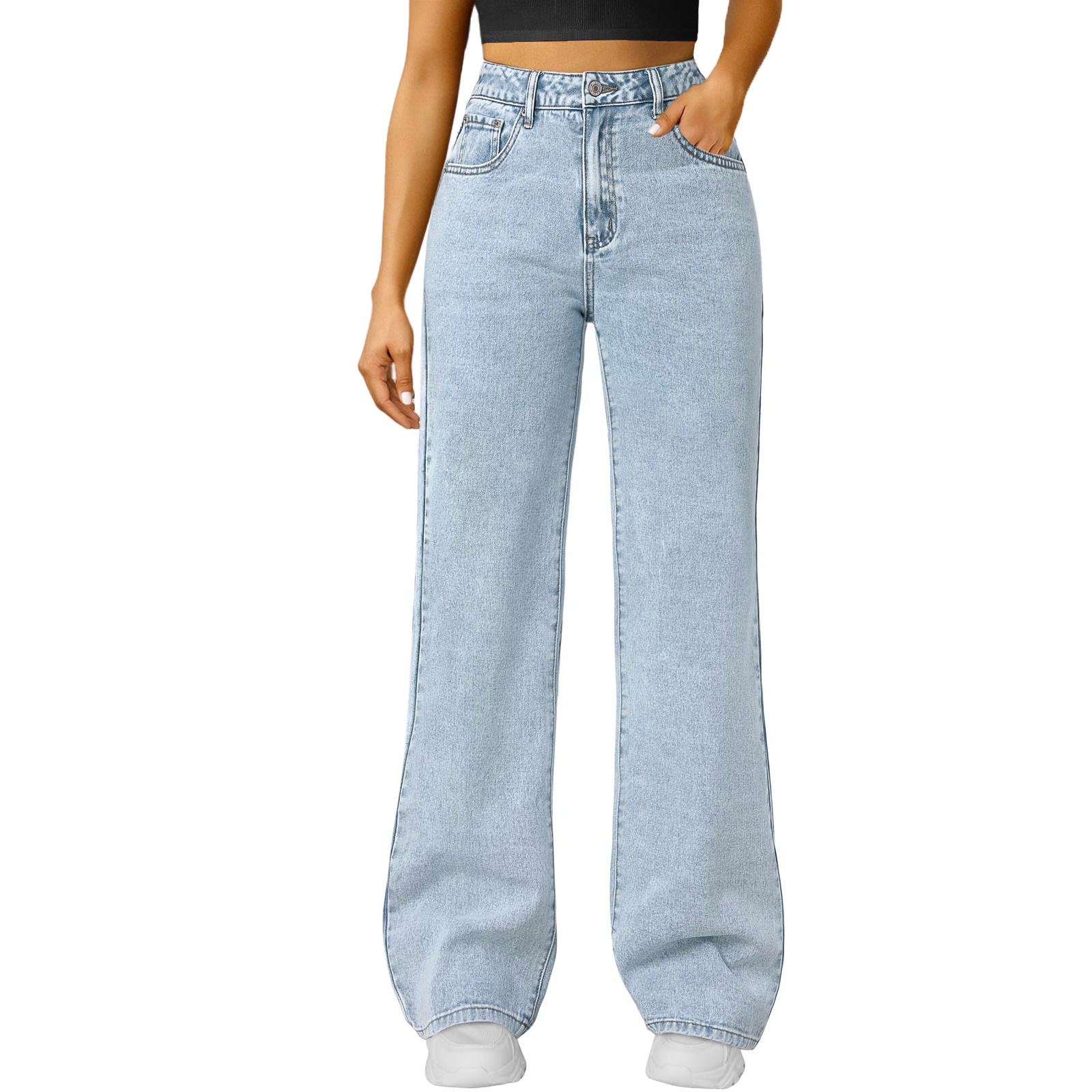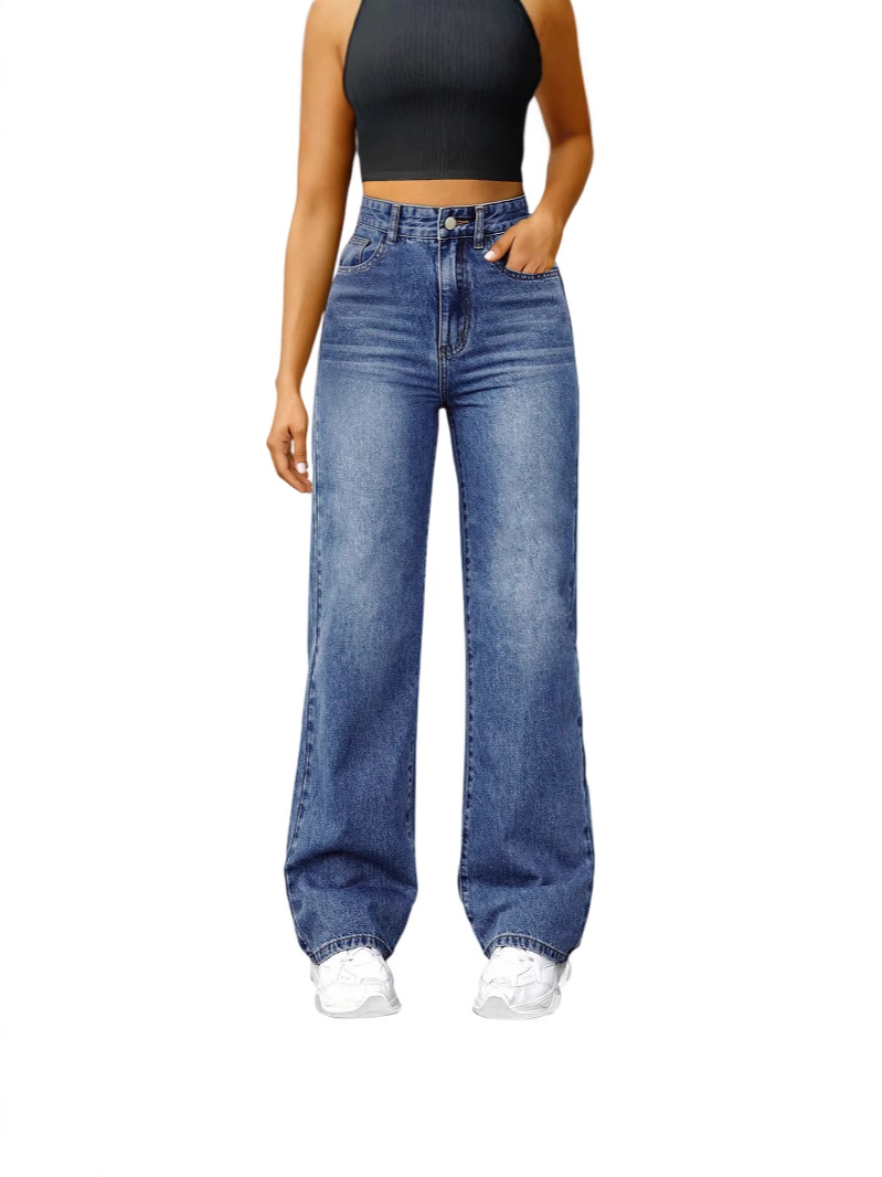 여성용 캐주얼 스트레이트 청바지, 마이크로 플레어, 신축성 있는 허리스토어 가기
