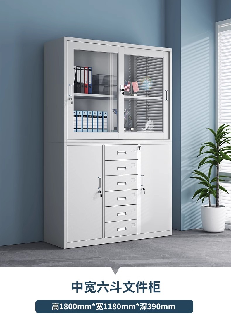 • 반짝이는 유리문 + 유리 서랍장 + 대형 장비 파일 캐비닛