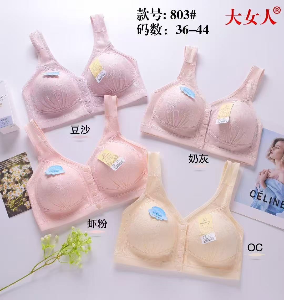 빅우먼 803 빅사이즈 앞버튼 브라, 얇고 와이어가 없고 편안한 푸쉬업 엄마 중노년 조끼 브라
