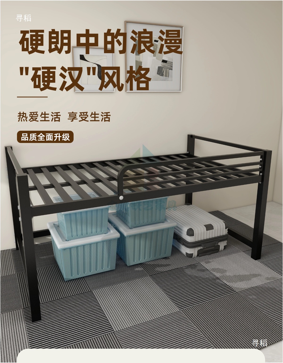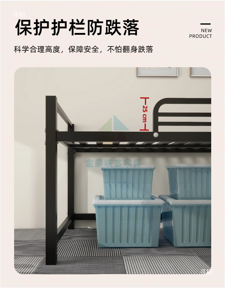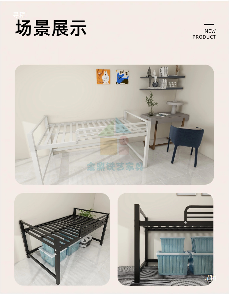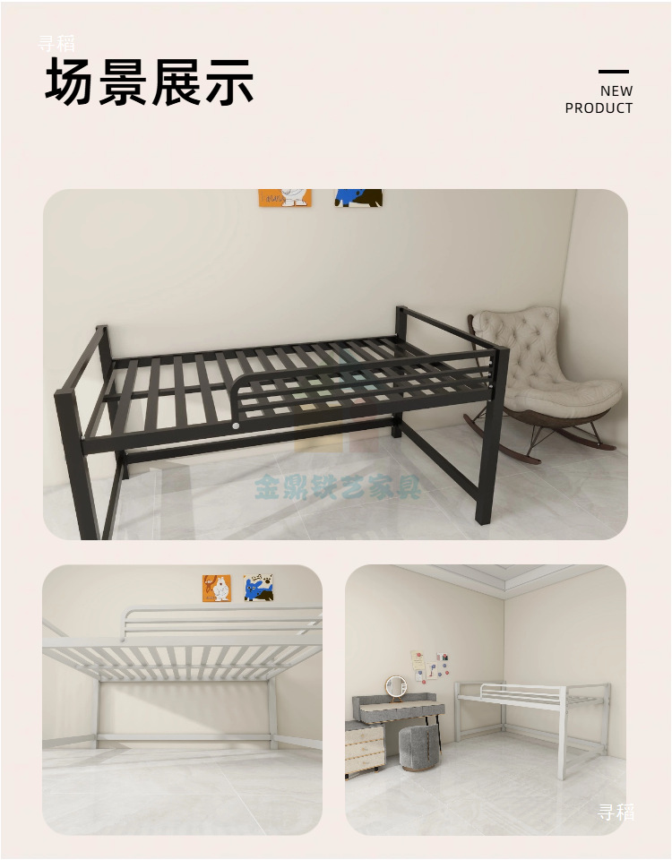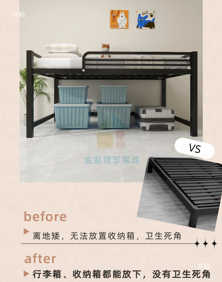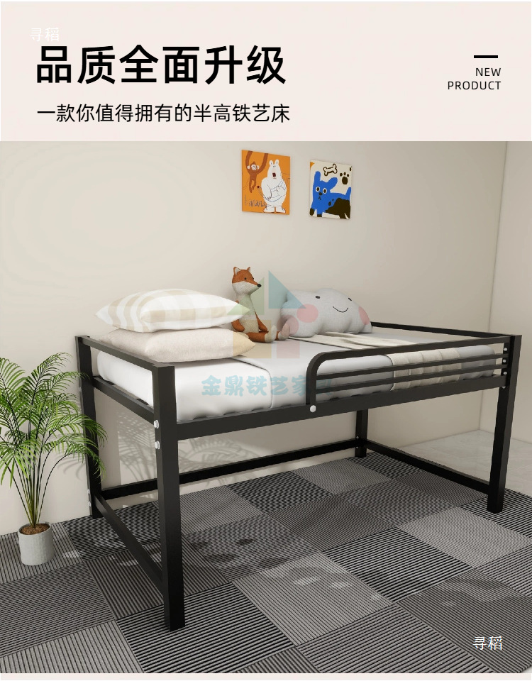금속 철제 프레임 반 높이 침대 높은 다리 행 뼈대 작은 아파트 홍콩 통합 철 1.2 더블 반 높이 침대스토어 가기