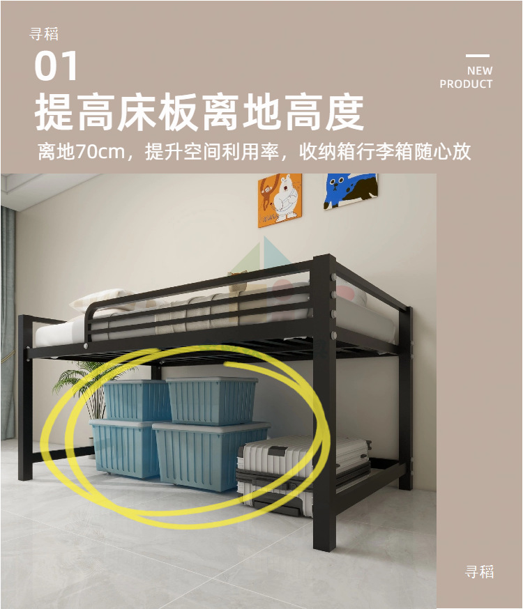 금속 철제 프레임 반 높이 침대 높은 다리 행 뼈대 작은 아파트 홍콩 통합 철 1.2 더블 반 높이 침대