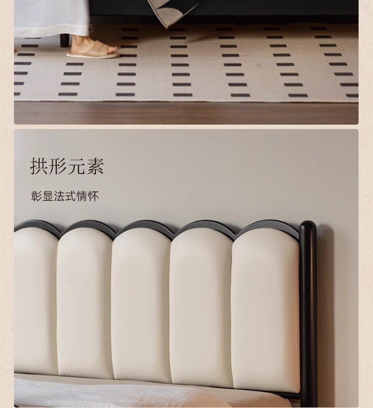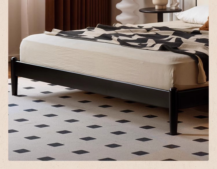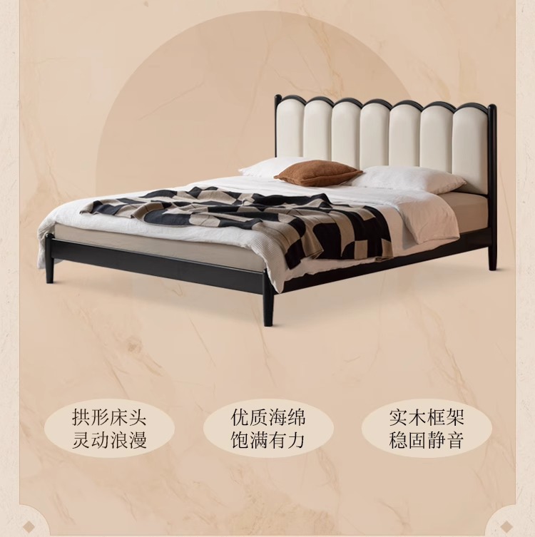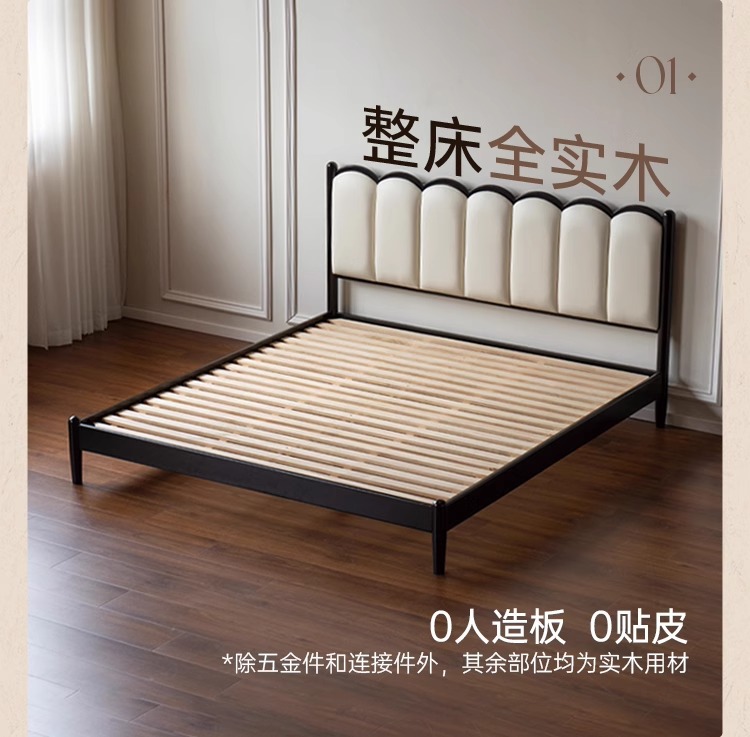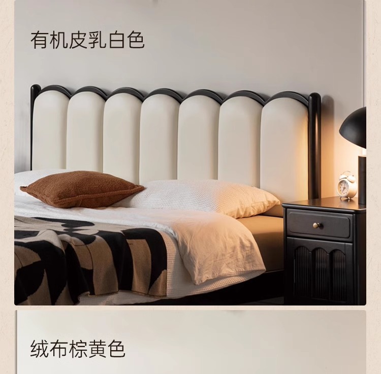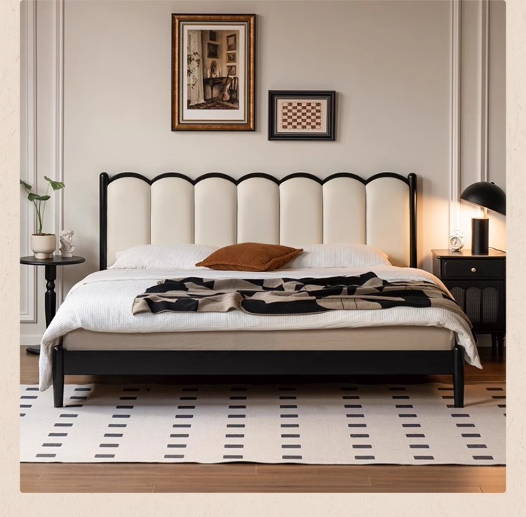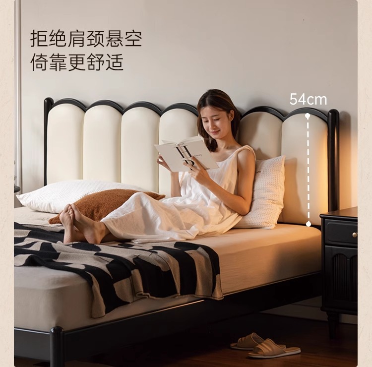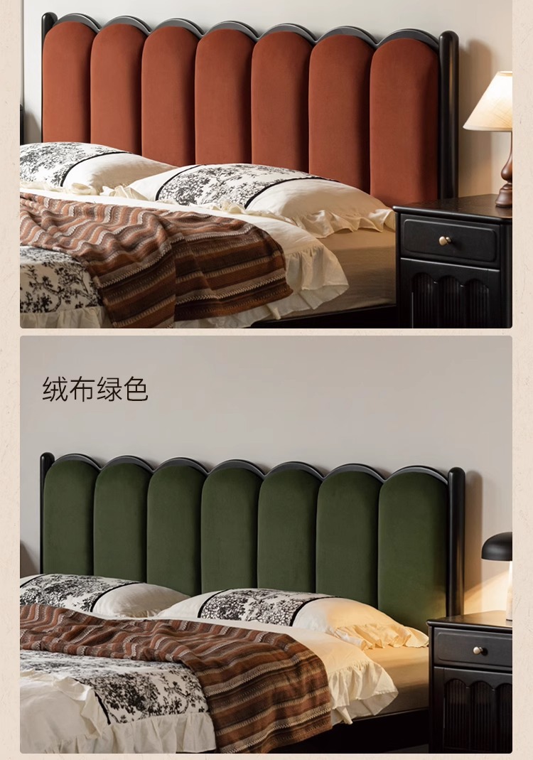 Zhangjia Gongzi 단단한 나무 침대 복고풍 스타일 더블 침대 침실 홈 프랑스어 부드러운 침대 간단한 검은 색 하프 침대