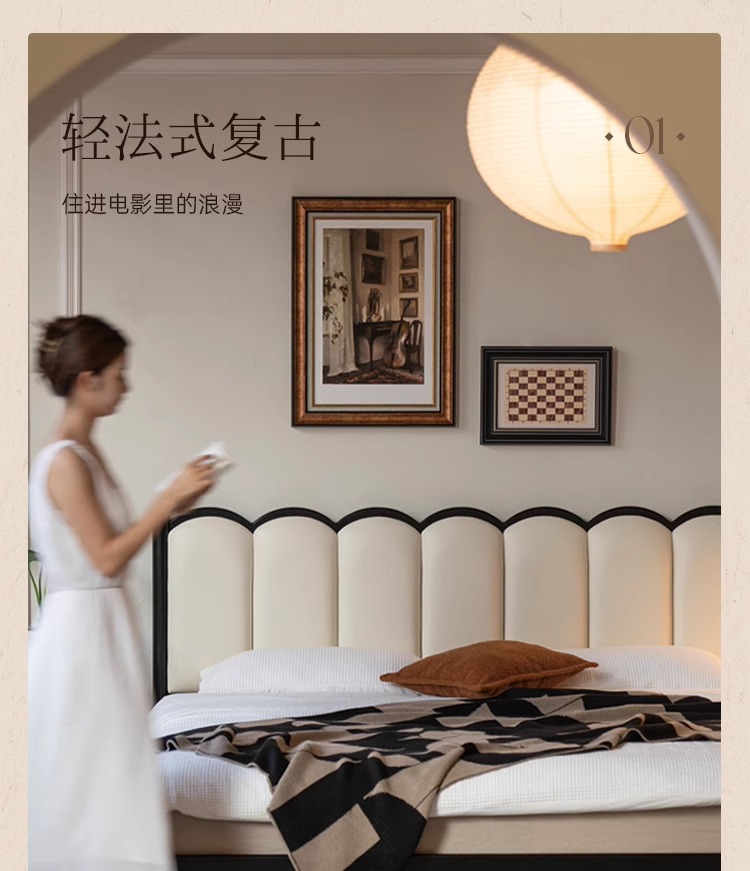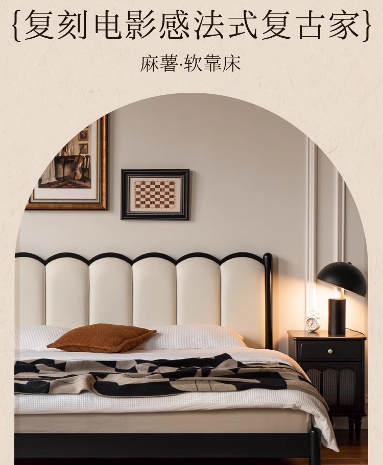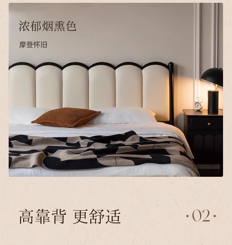 Zhangjia Gongzi 단단한 나무 침대 복고풍 스타일 더블 침대 침실 홈 프랑스어 부드러운 침대 간단한 검은 색 하프 침대스토어 가기