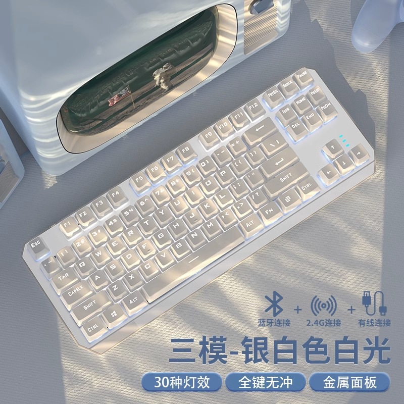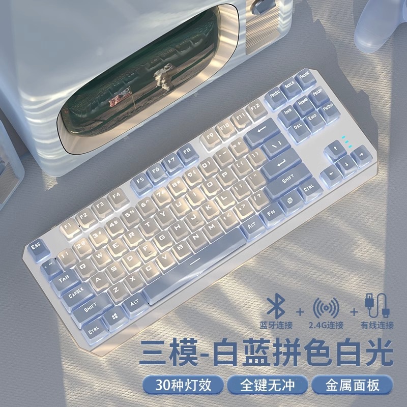 • 블랙 샤프트 [e스포츠 플레이어는 흰색과 파란색을 좋아하고 흰색 빛을 좋아합니다. 87 키 [무선 블루투스 유선 사랑 포인트 3 모드 사랑 포인트 사랑 포인트 아니요