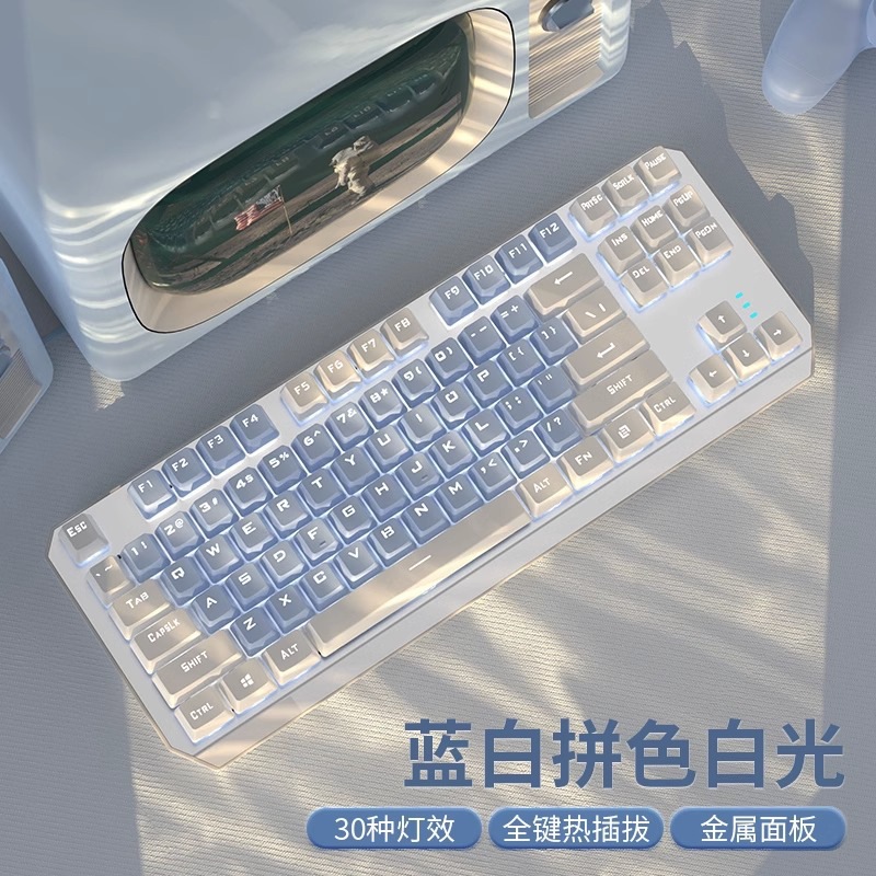 • 검정색 축 [e스포츠 플레이어는 흰색과 파란색을 좋아하고 흰색 조명을 좋아합니다. 87개 키 [전체 키 핫스왑 가능, 30가지 조명 효과, 사랑, 사랑, 아니요