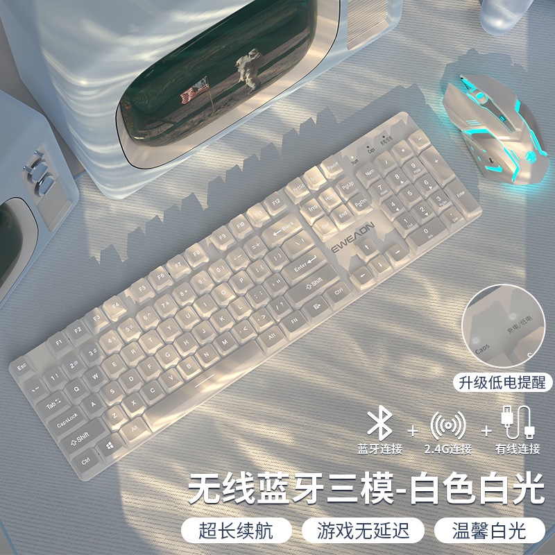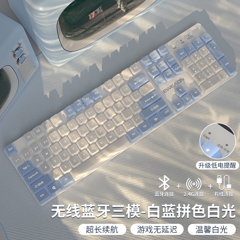 • 블랙 샤프트 [e스포츠 플레이어는 흰색과 파란색을 좋아하고 흰색 조명을 좋아합니다. 104키 + 무선 게이밍 마우스 [무선 블루투스 유선 사랑 포인트 3가지 모드 사랑 포인트 사랑 포인트 아니요