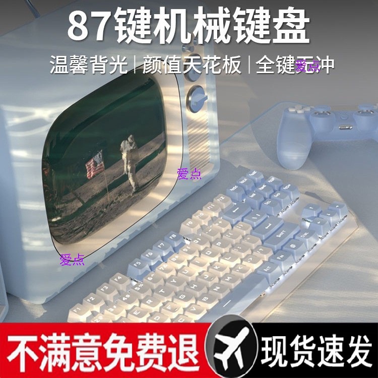 • 블랙 샤프트 [e스포츠 플레이어는 흰색과 파란색을 좋아하고 흰색 조명을 좋아합니다. 87키 + 무선 게이밍 마우스 [무선 블루투스 유선 사랑 포인트 3가지 모드 사랑 포인트 사랑 포인트 아니요