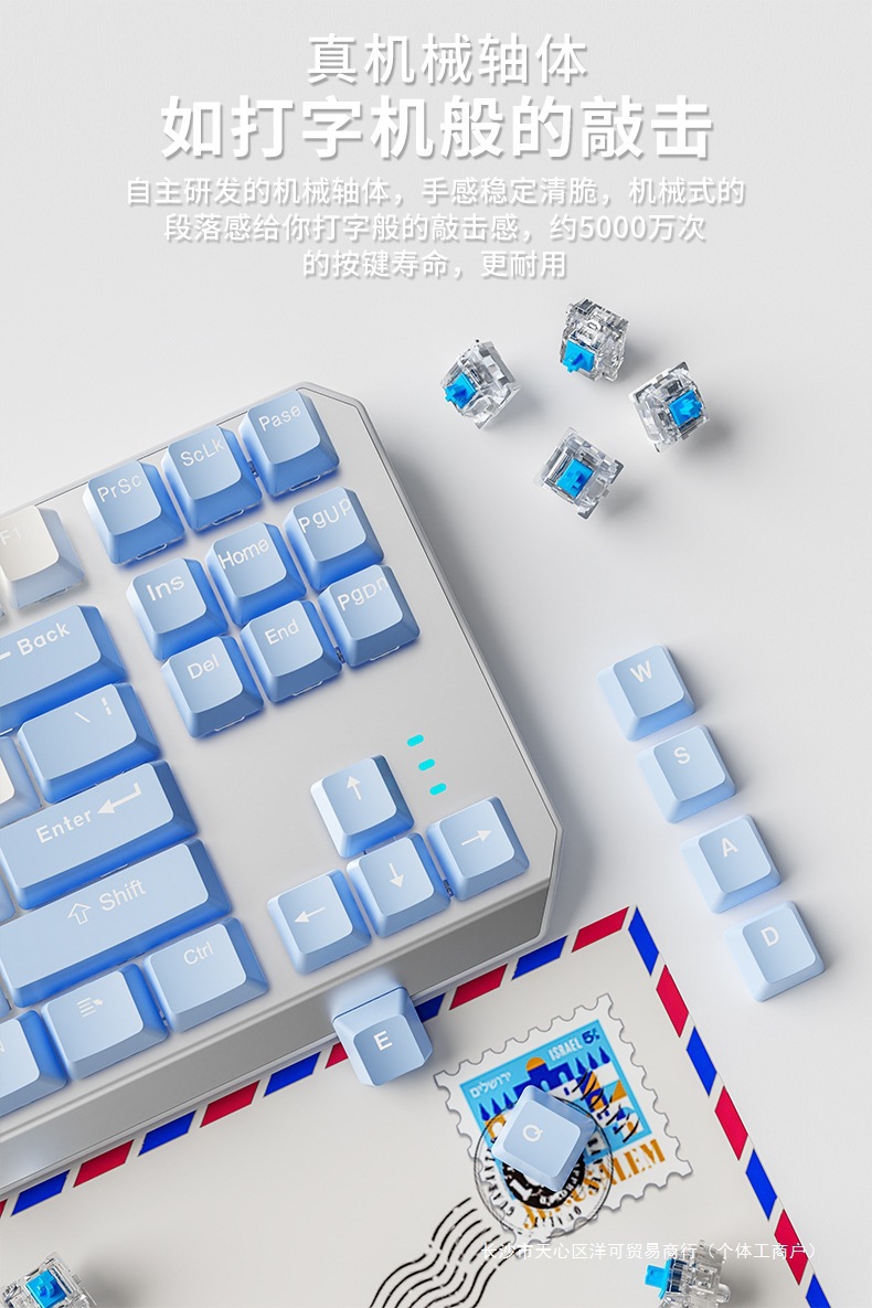 • 블랙 샤프트 [e스포츠 플레이어는 Love Dot Love Dot Sky Blue 측면 각인 Love Dot White Light 87키 유선을 좋아합니다. [다기능 손잡이 Love Dot 30 조명 효과 Love Dot Love Dot No
