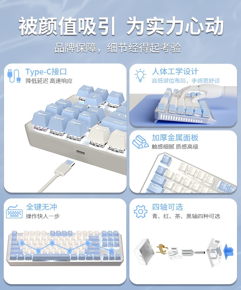 • 검정색 축 [e스포츠 플레이어는 파란색과 흰색을 좋아하고 흰색 조명을 좋아합니다. 87개 키 [전체 키 핫스왑 가능 사랑 포인트 30가지 조명 효과 사랑 포인트 사랑 포인트 아니요