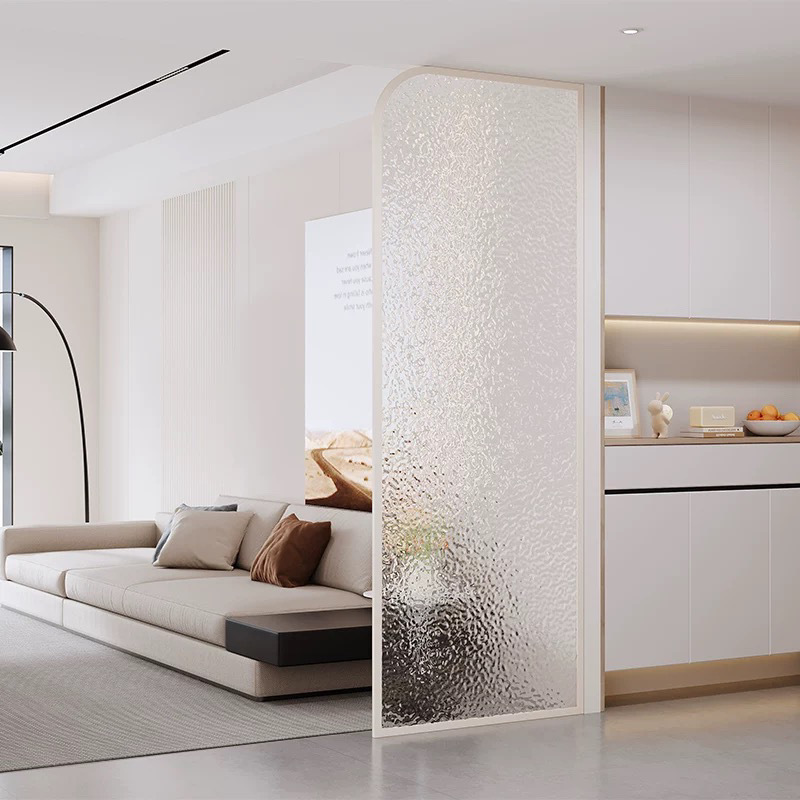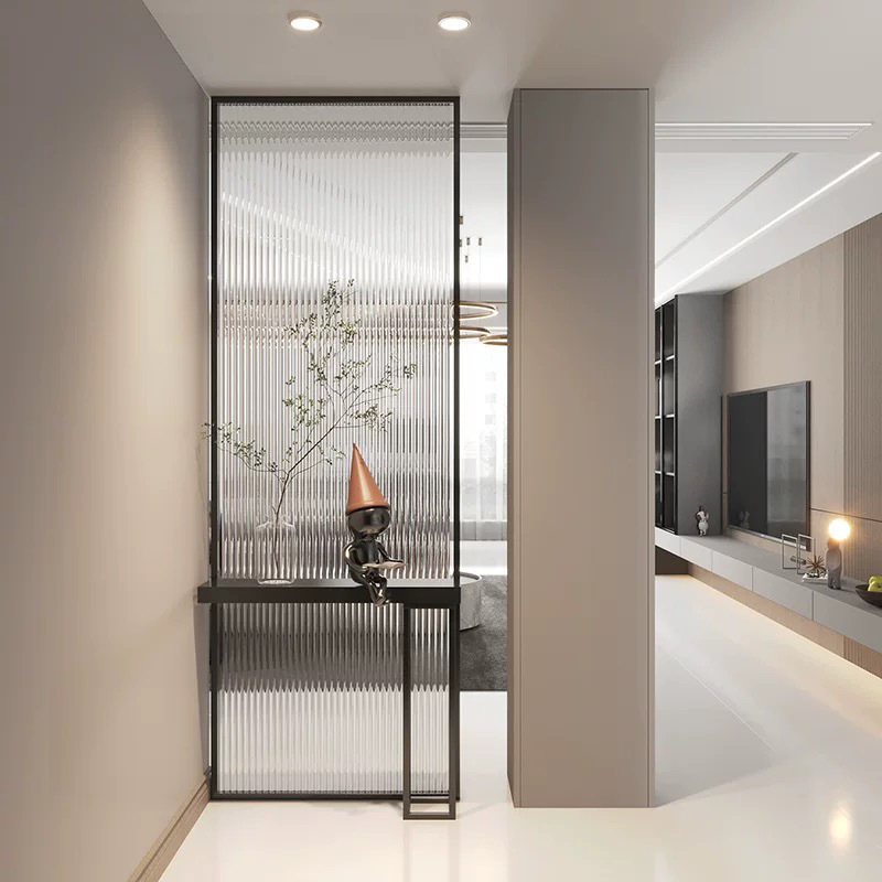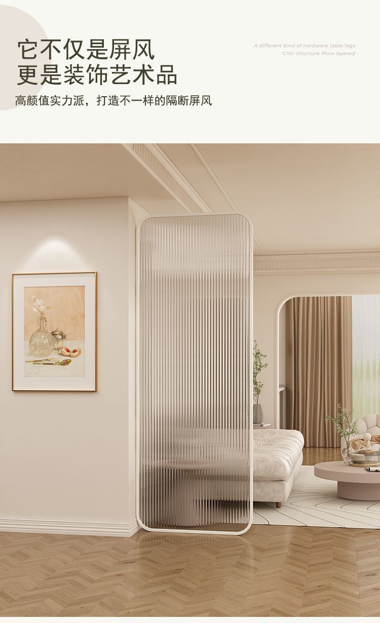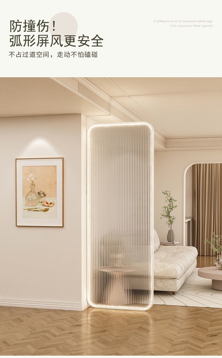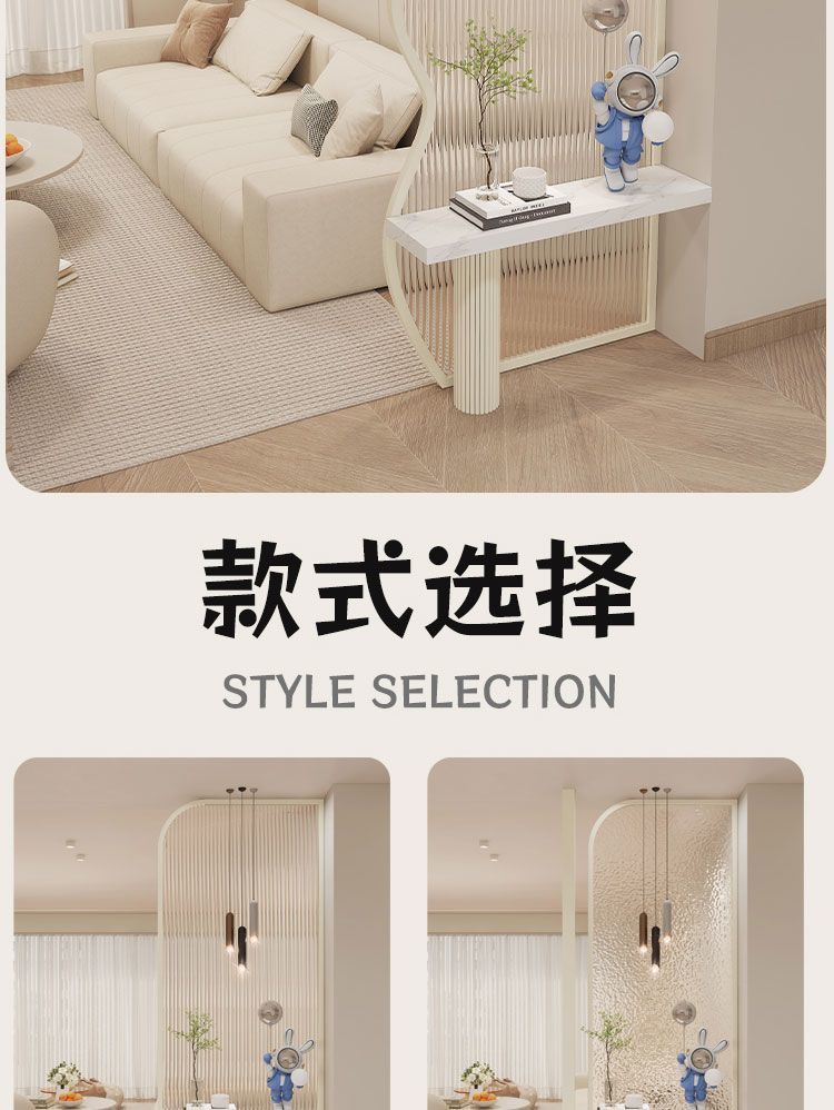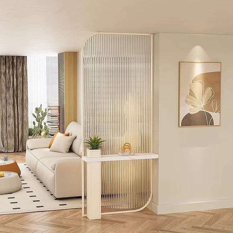 창의적인 크림 스타일의 물결 모양의 스크린 파티션, 현관에 직면한 거실, 현관 보관함을 가리키는 세면대스토어 가기
