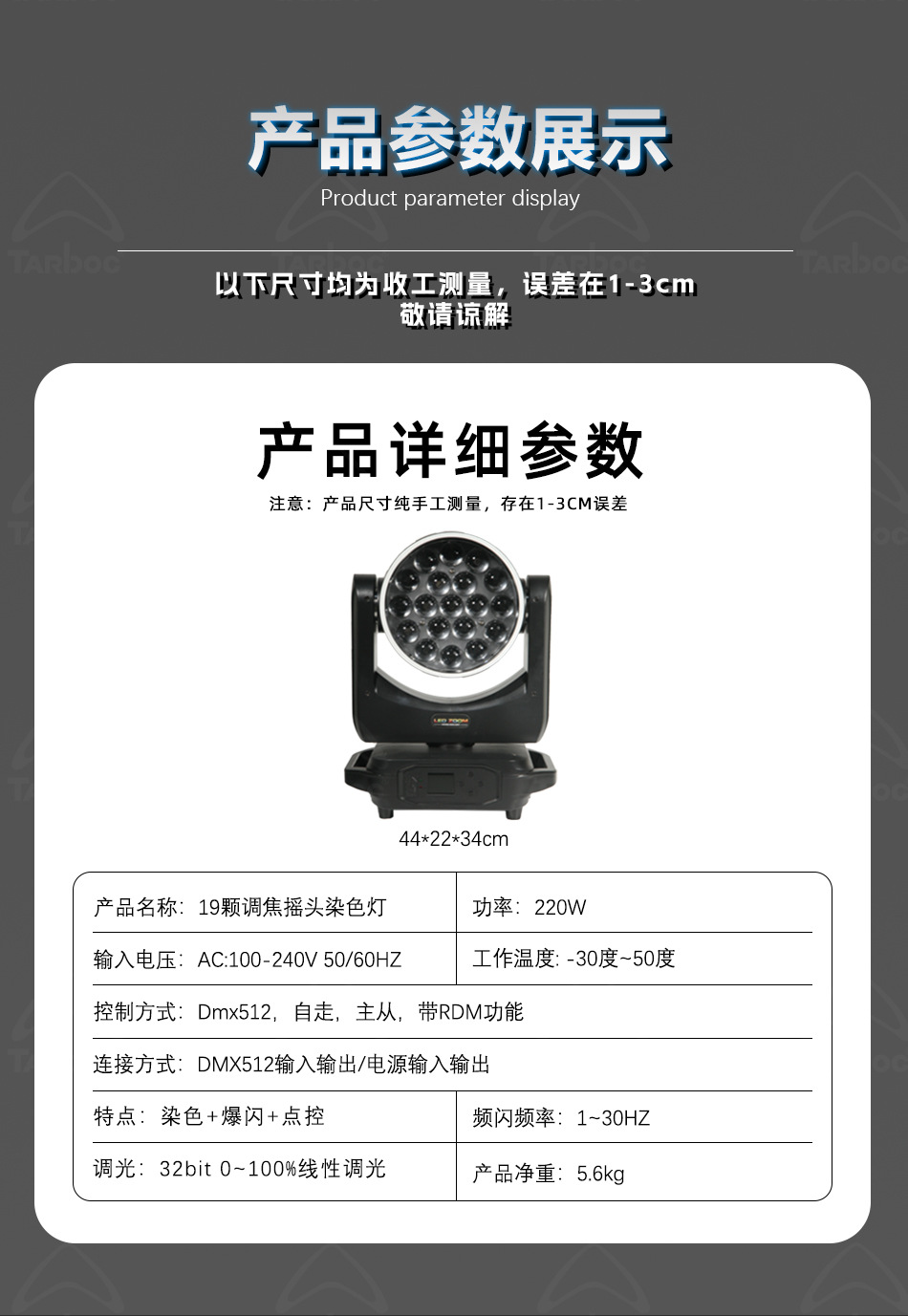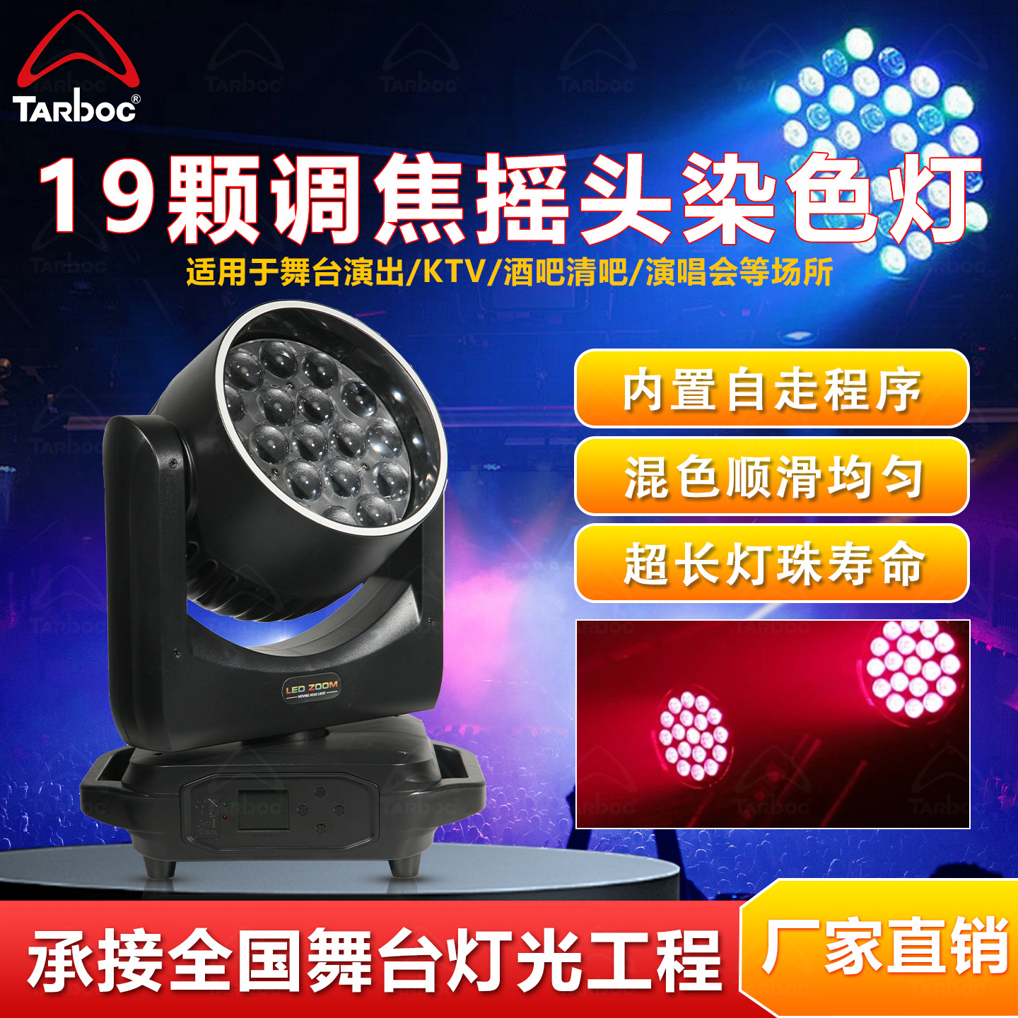 19개의 포커싱 이동 헤드 염색 조명, 라이브 방송실 공연 분위기 조명, 바 디스코 염색 조명, 스포트라이트, 무대 조명