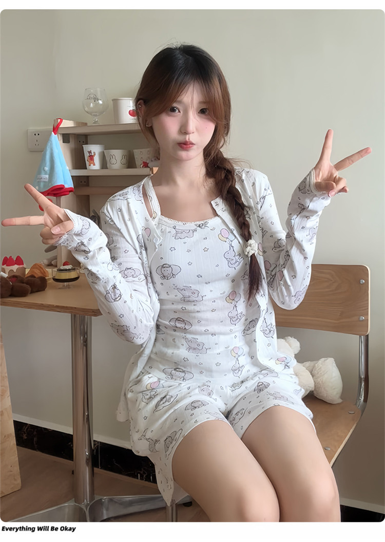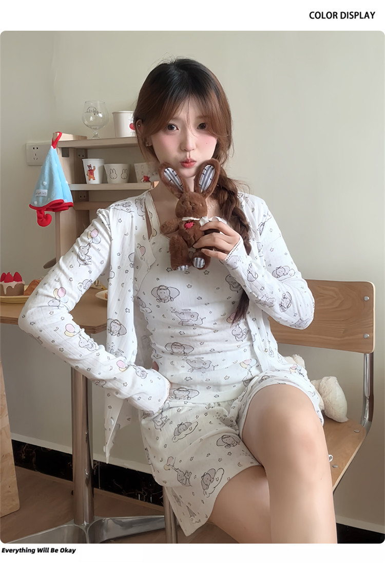2025 새로운 슬링 풍선 코끼리 반바지 버전 3 피스 만화 귀여운 잠옷은 집 밖에서 착용할 수 있습니다