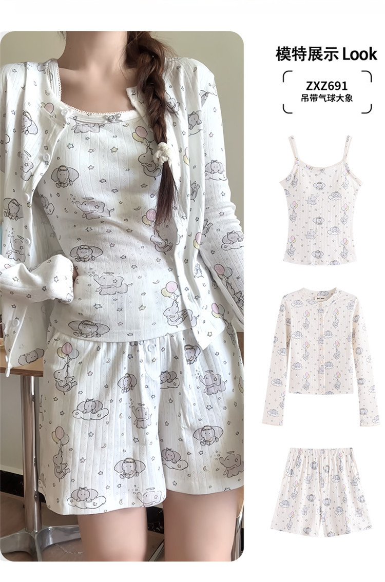 2025 새로운 슬링 풍선 코끼리 반바지 버전 3 피스 만화 귀여운 잠옷은 집 밖에서 착용할 수 있습니다스토어 가기