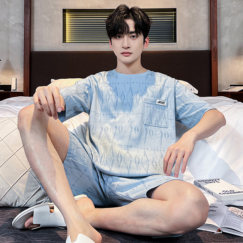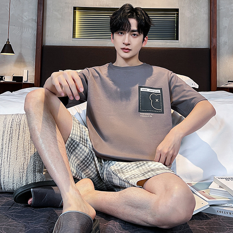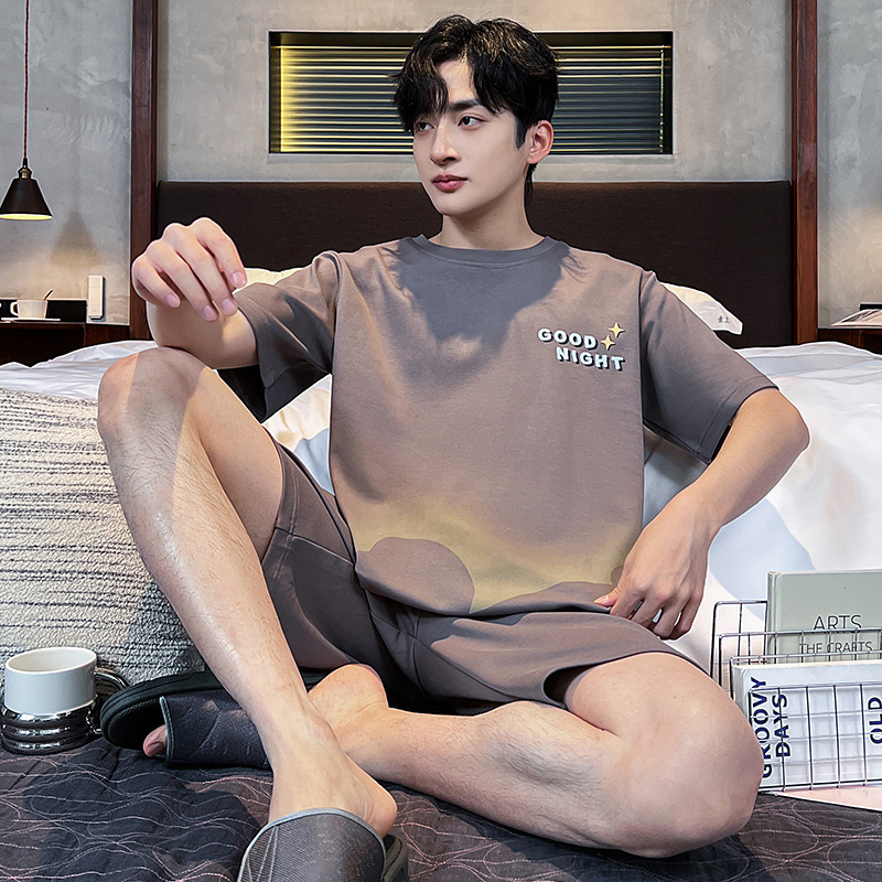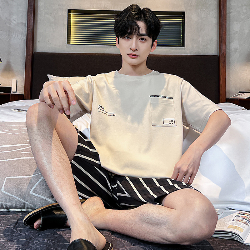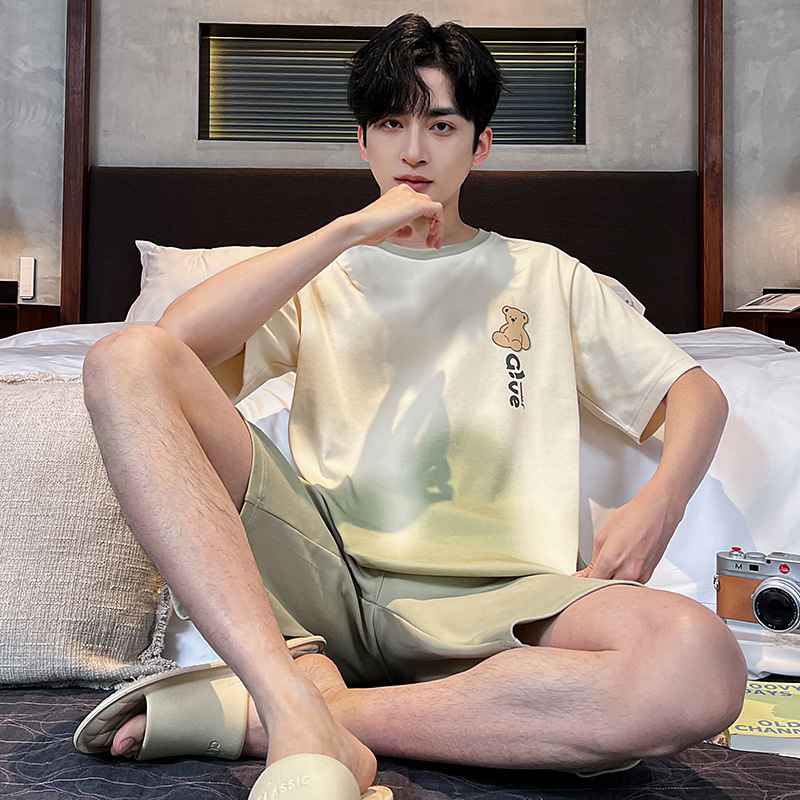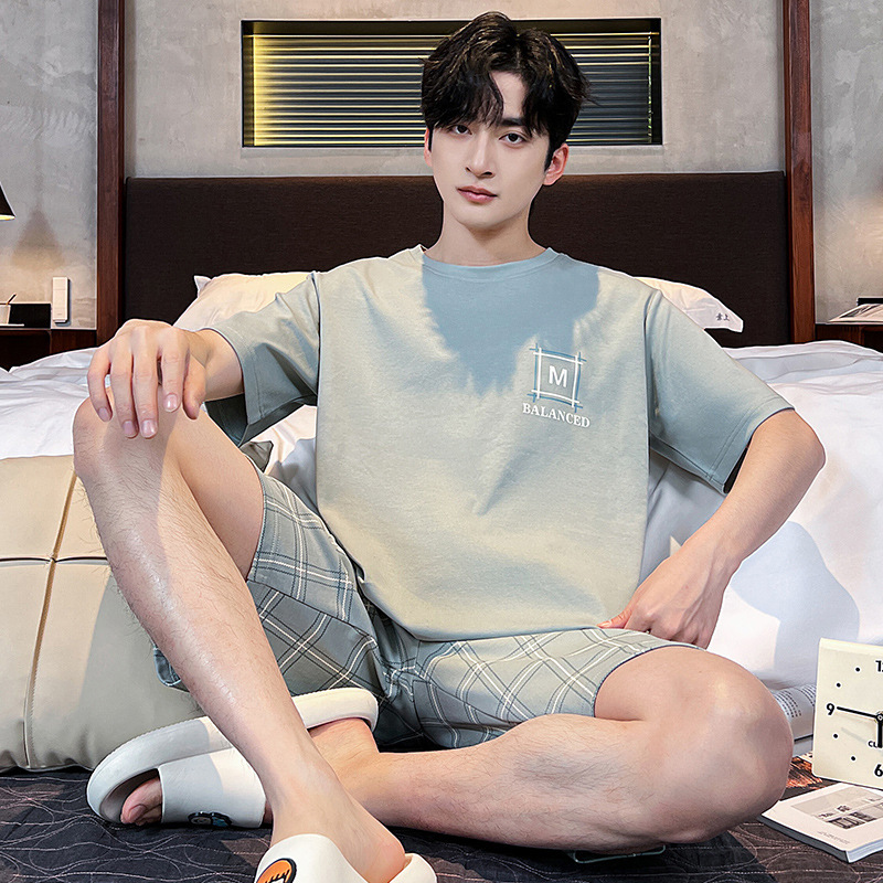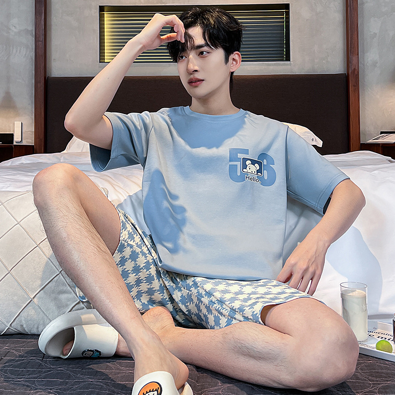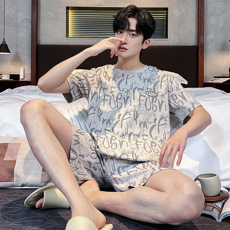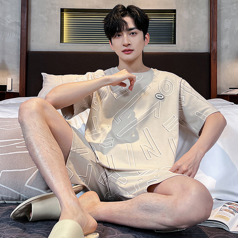 2025 새로운 여름 남성 순수 코튼 반팔 잠옷 대형 얇은 스타일 소년 반바지 홈웨어 세트 외부에서 착용 가능