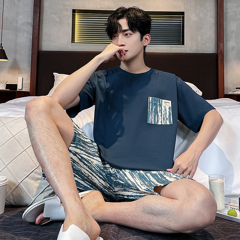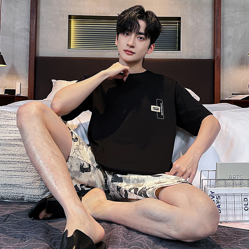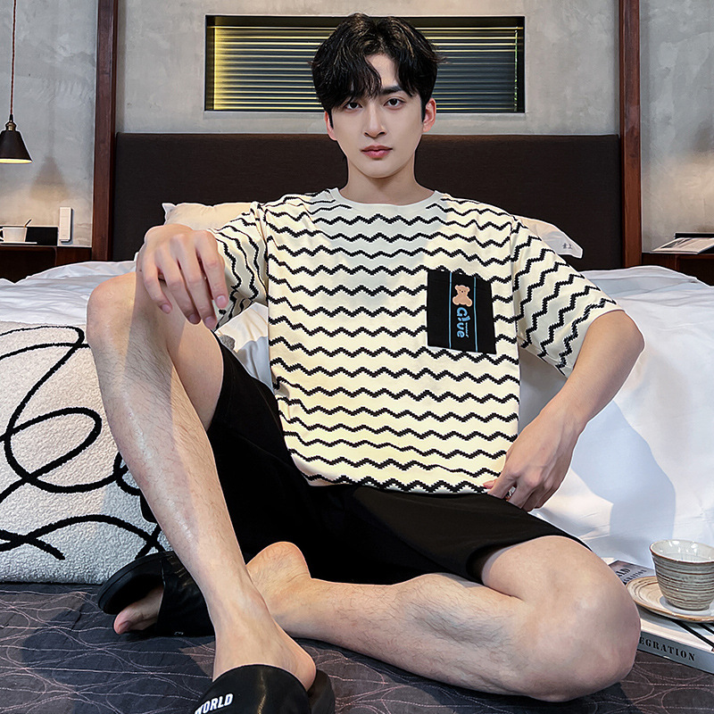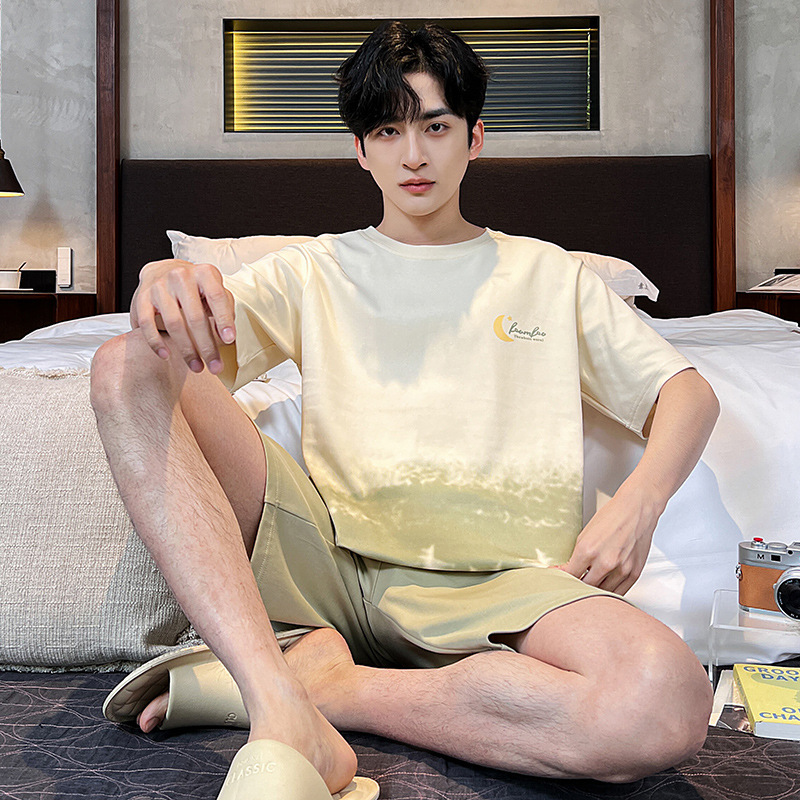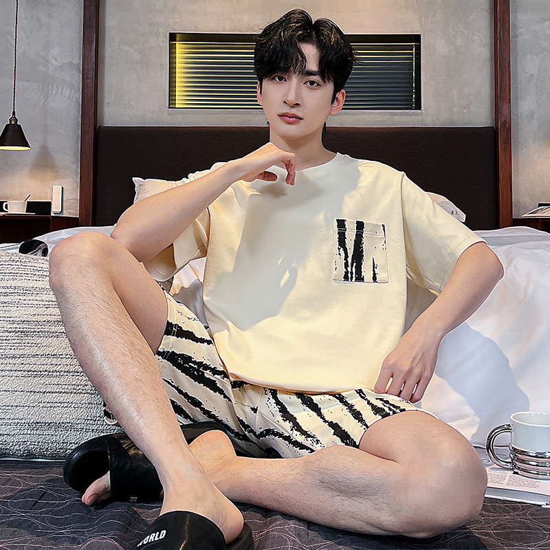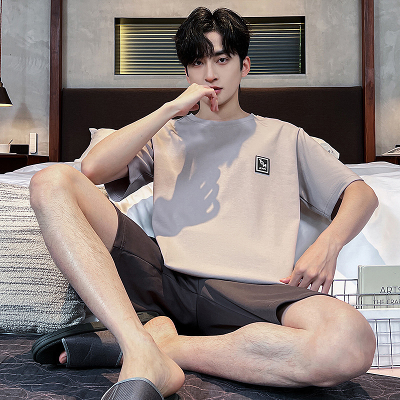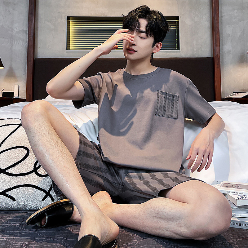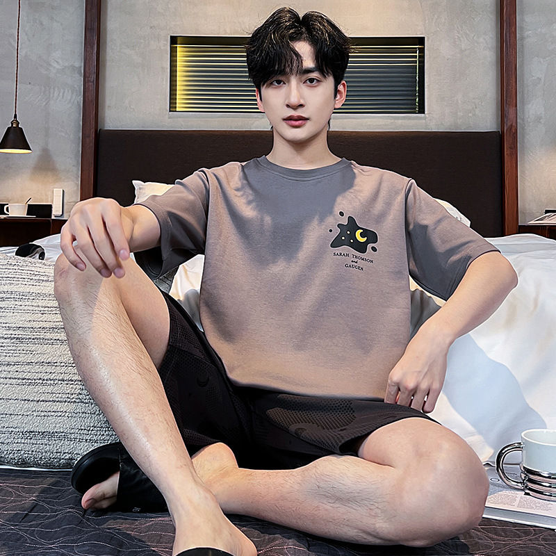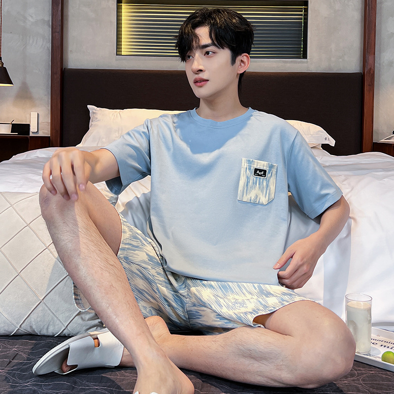 2025 새로운 여름 남성 순수 코튼 반팔 잠옷 대형 얇은 스타일 소년 반바지 홈웨어 세트 외부에서 착용 가능