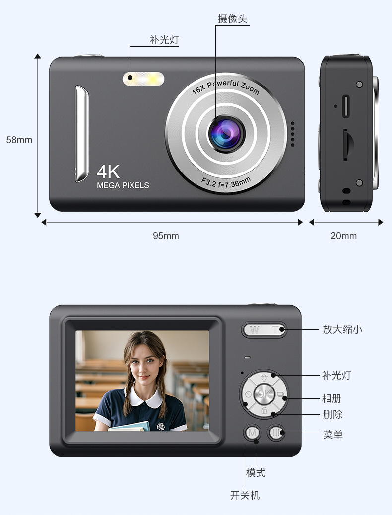 4400W像素学生照相机小型高清数码相机DV入门级家用CCD卡机