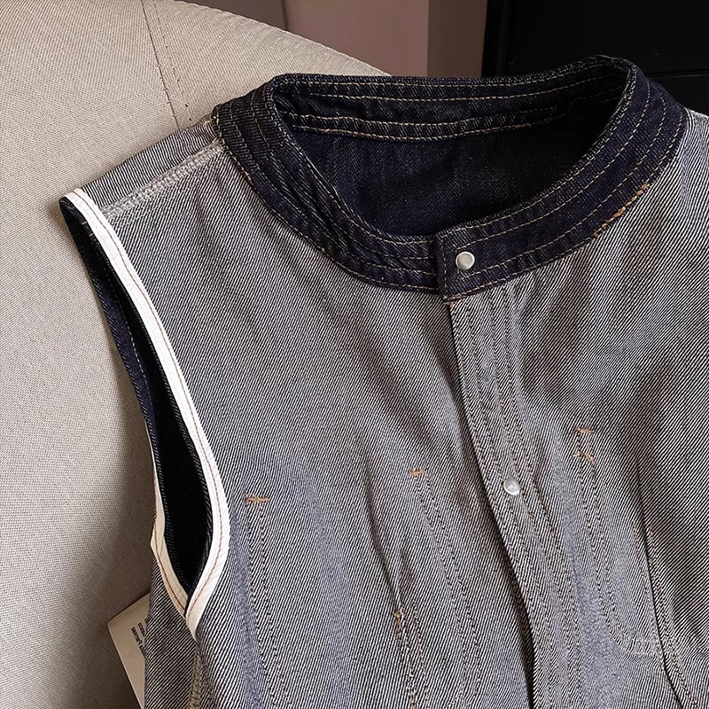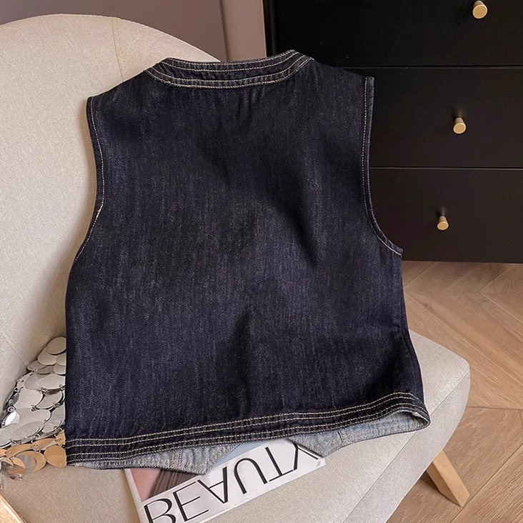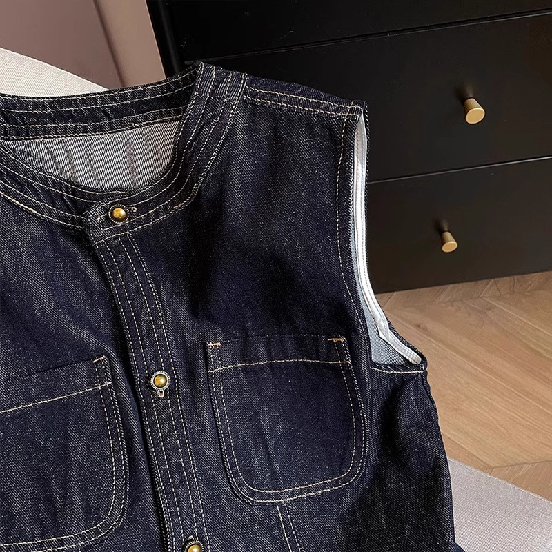 패셔너블하고 슬림한 미국 복고풍 데님 조끼 루즈한 레이어드 민소매 조끼 여성용 2025 봄, 가을 조끼