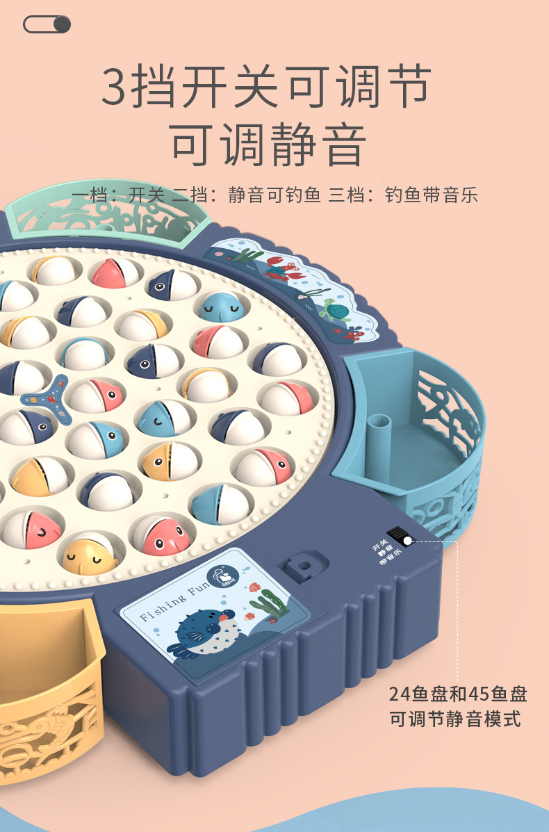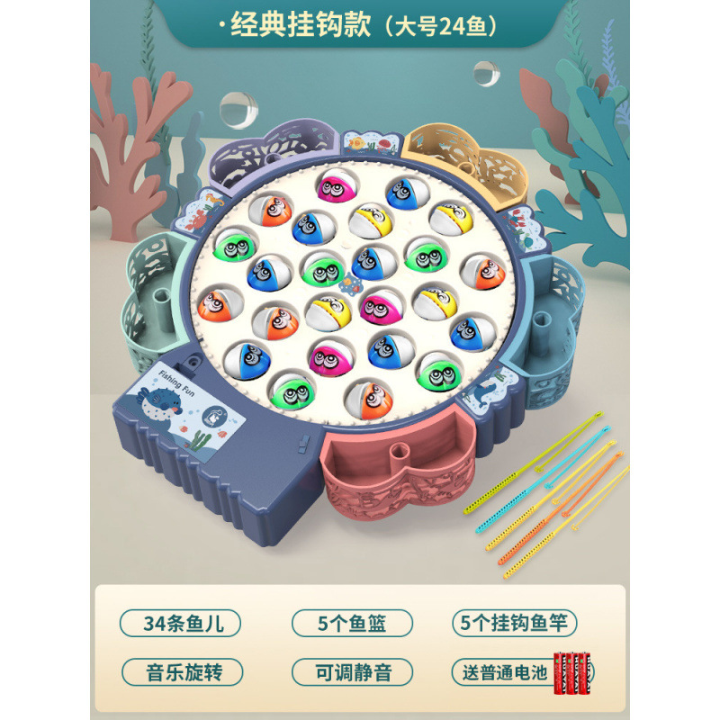 • 파란색 [후크/배터리 모델] 물고기 34개 막대 5개 + 물고기 바구니 5개 + 음악(음소거 조절 가능)