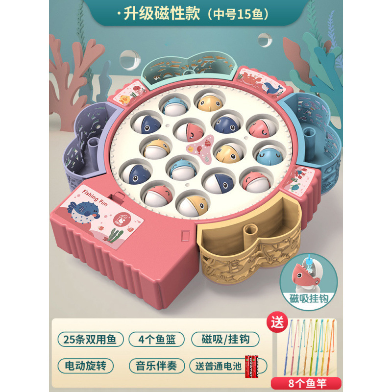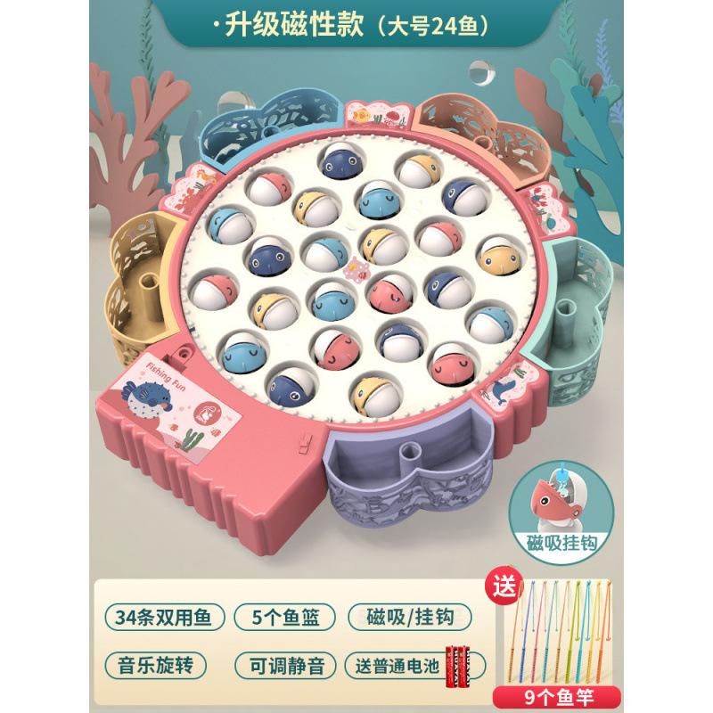 • 핑크 [자기/배터리 모델] 양용 물고기 25개 막대 8개 + 물고기 바구니 4개 + 음악